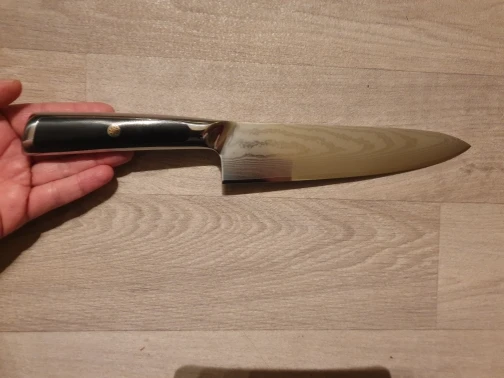Нож хорош! Заточка как бритва. ПОНЯТНО, что это далеко не дамасск а всего лишь рисунок , но если vg10 уже неплохо. Рекомендую. Буду докупать до полного набора ещё пару ножей.