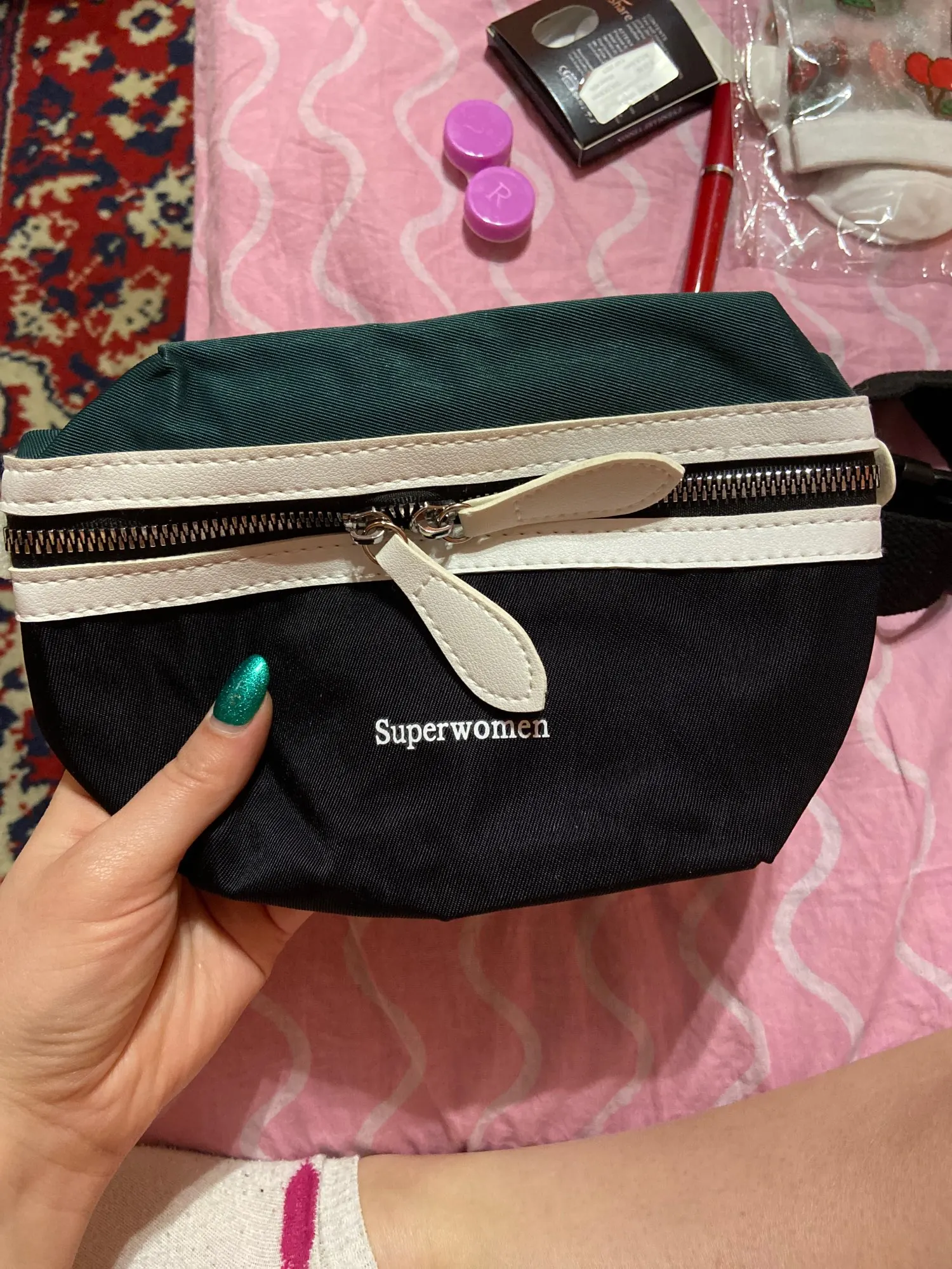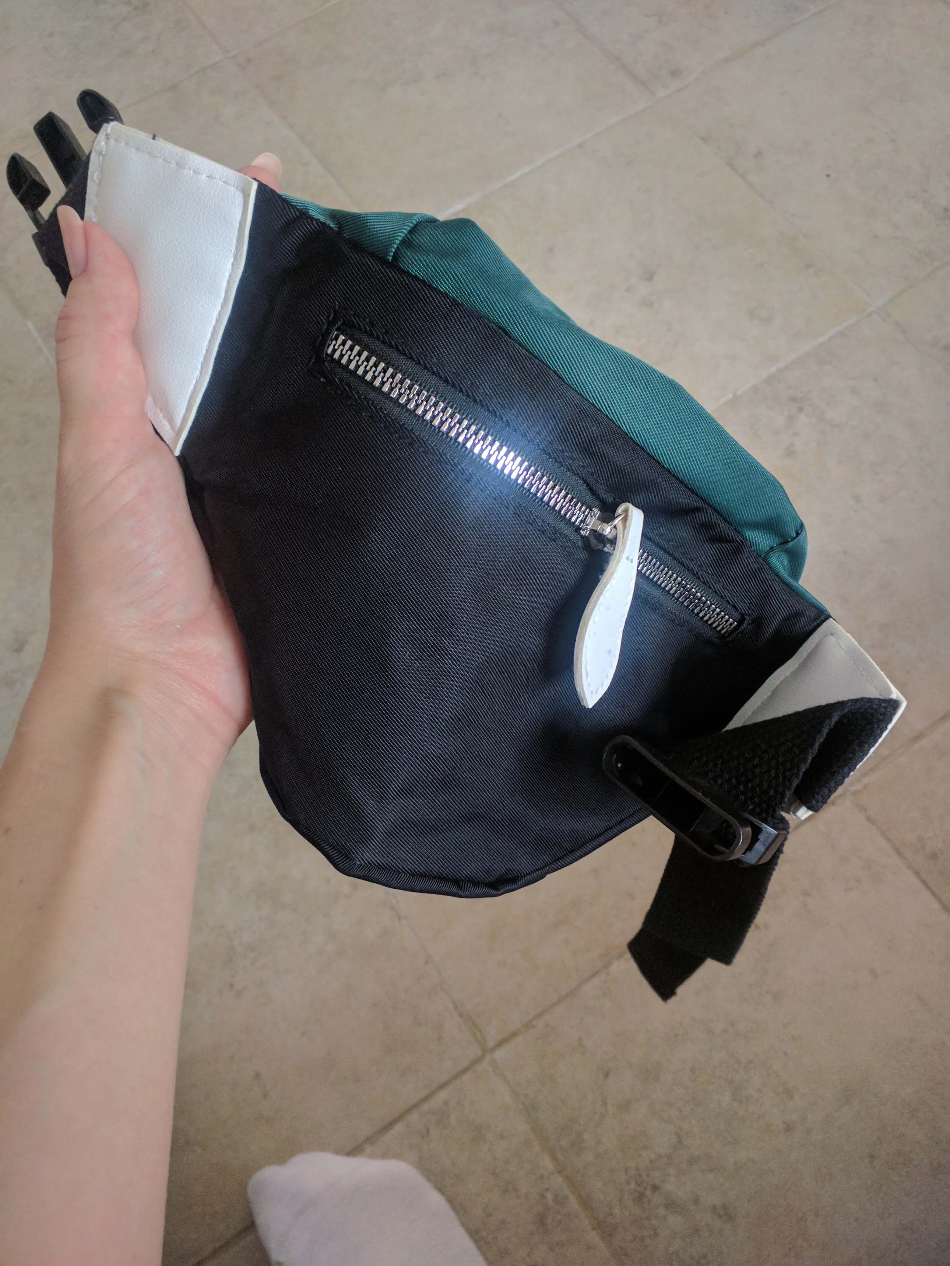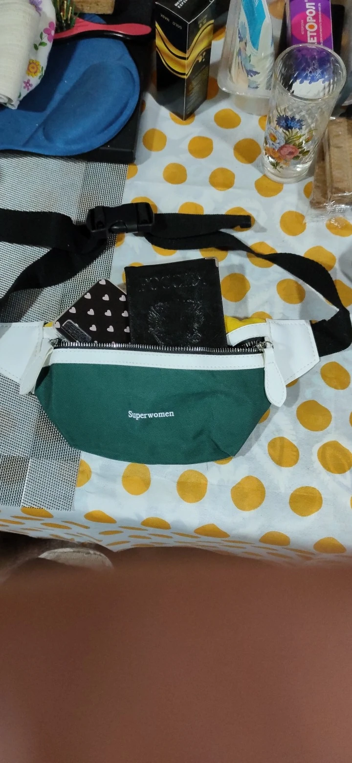 Доставка: Сумка пришла за 11 дней в МО. Качество: Что-то среднее. В кармашках есть подкладка. Молния пластмассовая и не самая качественная, но терпимо. Не могу сказать, какая ткань, но не синтетика [есть вероятность, что она есть в составе, но не на самом первом месте]. Вставки - кожзам. Лямки регулируются по длине и застегиваются на пластиковый защелкивающий замок [не знаю, как правильно он называется]. Швы хорошие, нитки не торчат. Функциональность: Для поясной сумки вполне вместительна, но задний карман больно маленький. Я надеялась класть туда телефон, но такая лопата не влезает туда. Разве что, более мелкие вещи. В носке пока не пробовала, но сомневаюсь, что сильно будет отличаться от других сумок такого типа. Недочёты: Есть брак в виде непонятных синих пятен на одной из ставок, которая переходит в лямку, за что и снизила оценку. Попробую оттереть меламиновой губкой. Цена-качество: На данный момент сумка стоит 540₽, что, по моему мнению, завышенно. Лучше поищите подешевле.