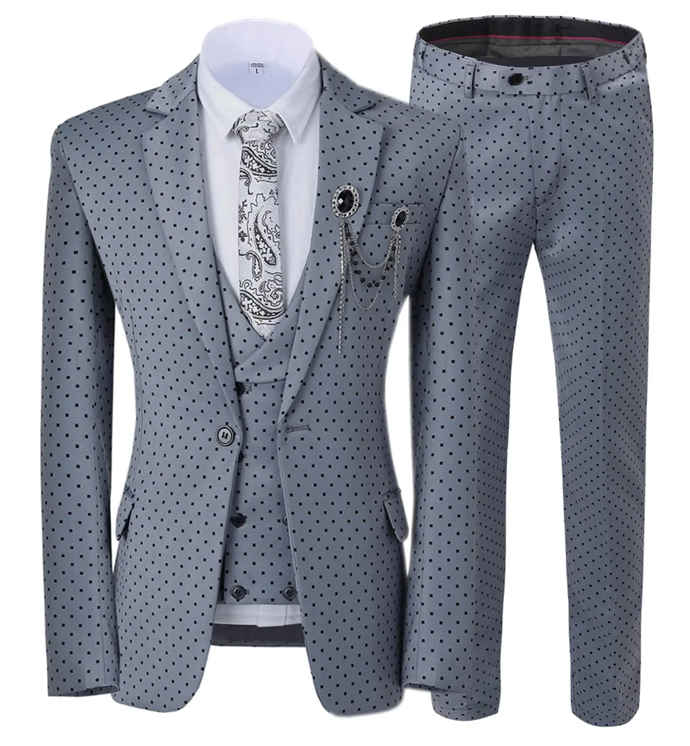 Мужской костюм в горошек из 3 предметов, пиджак, брюки, смокинги с вырезом на лацкане, жениха, для свадьбы Вечерние, блейзер, жилет и брюки, 2022