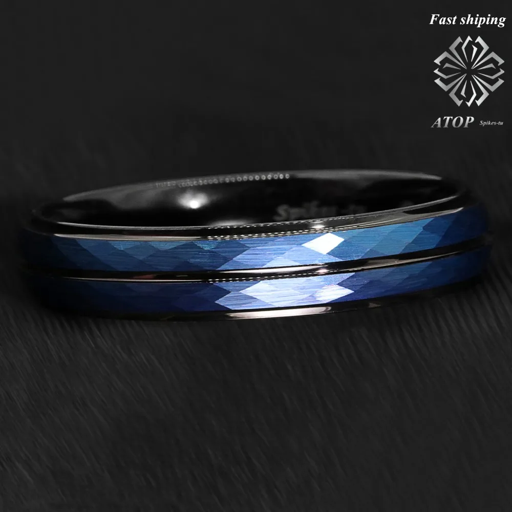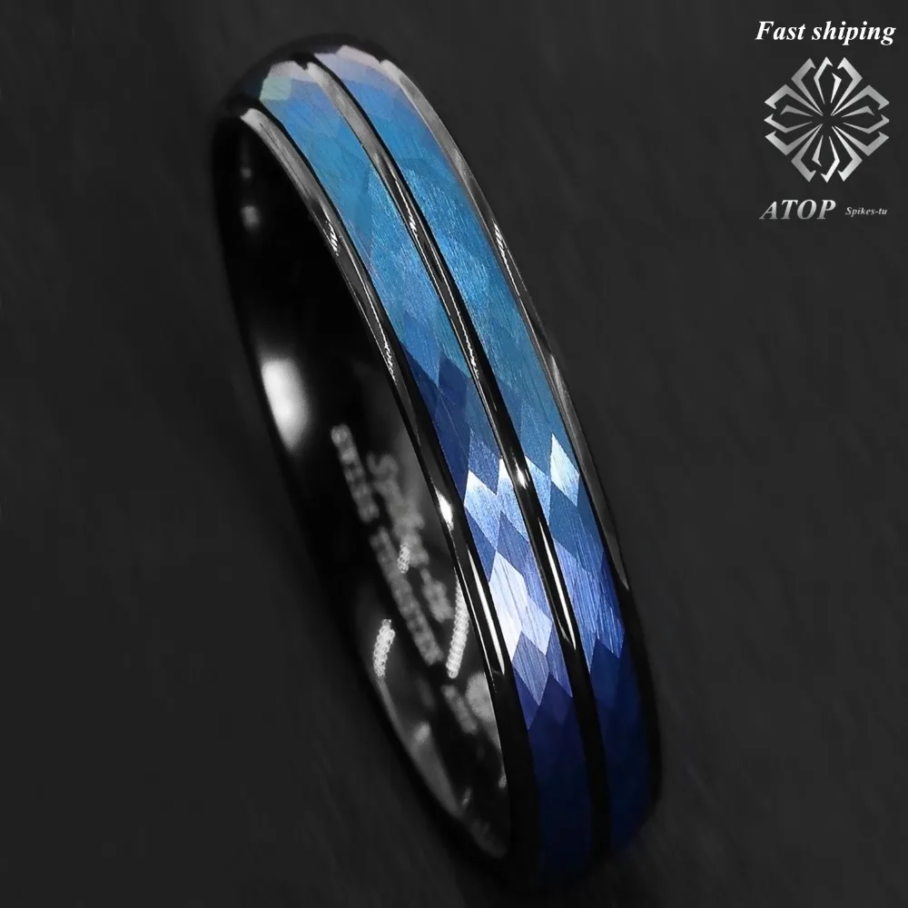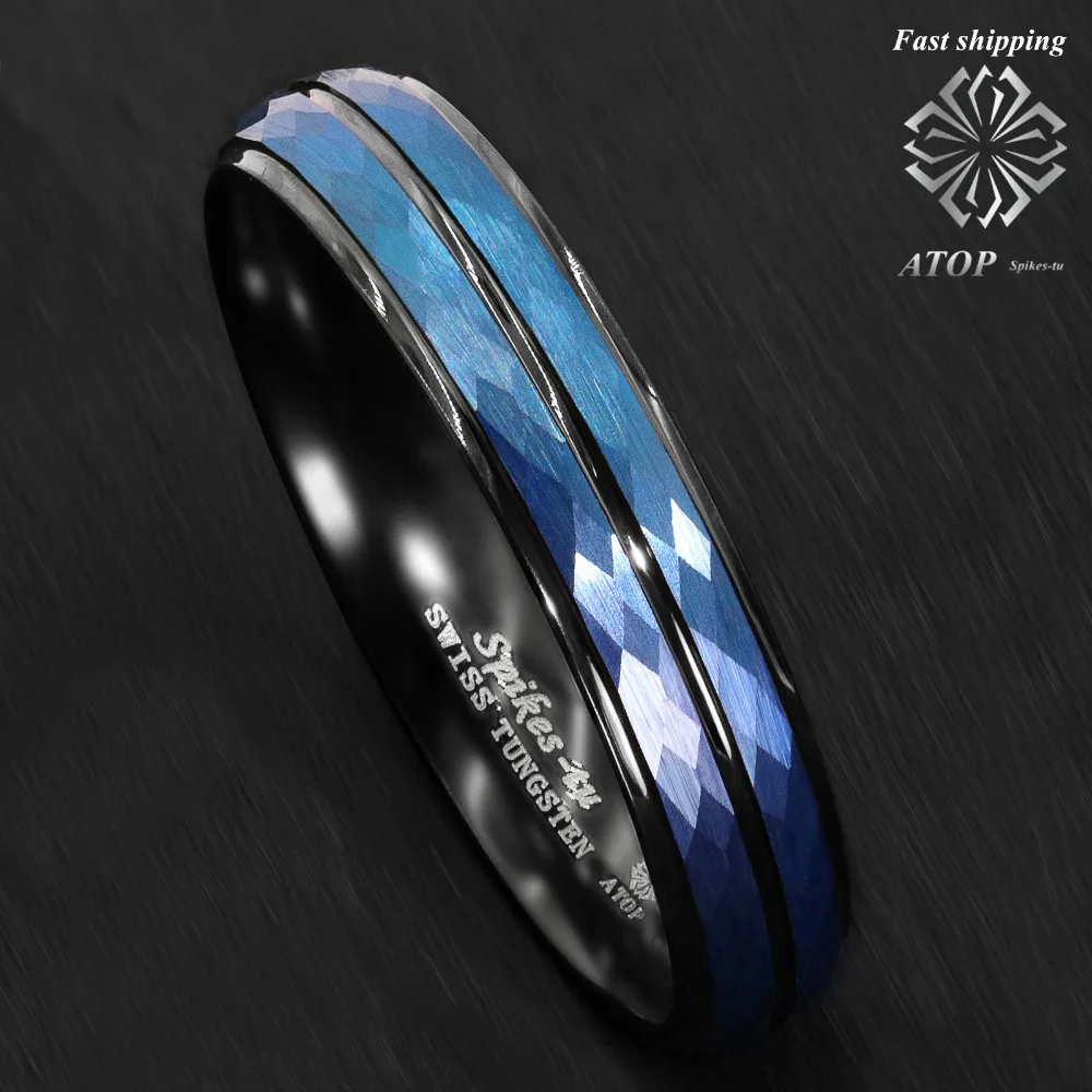 Мужское вольфрамовое кольцо ATOP, 8 мм, с начесом, синего и черного...