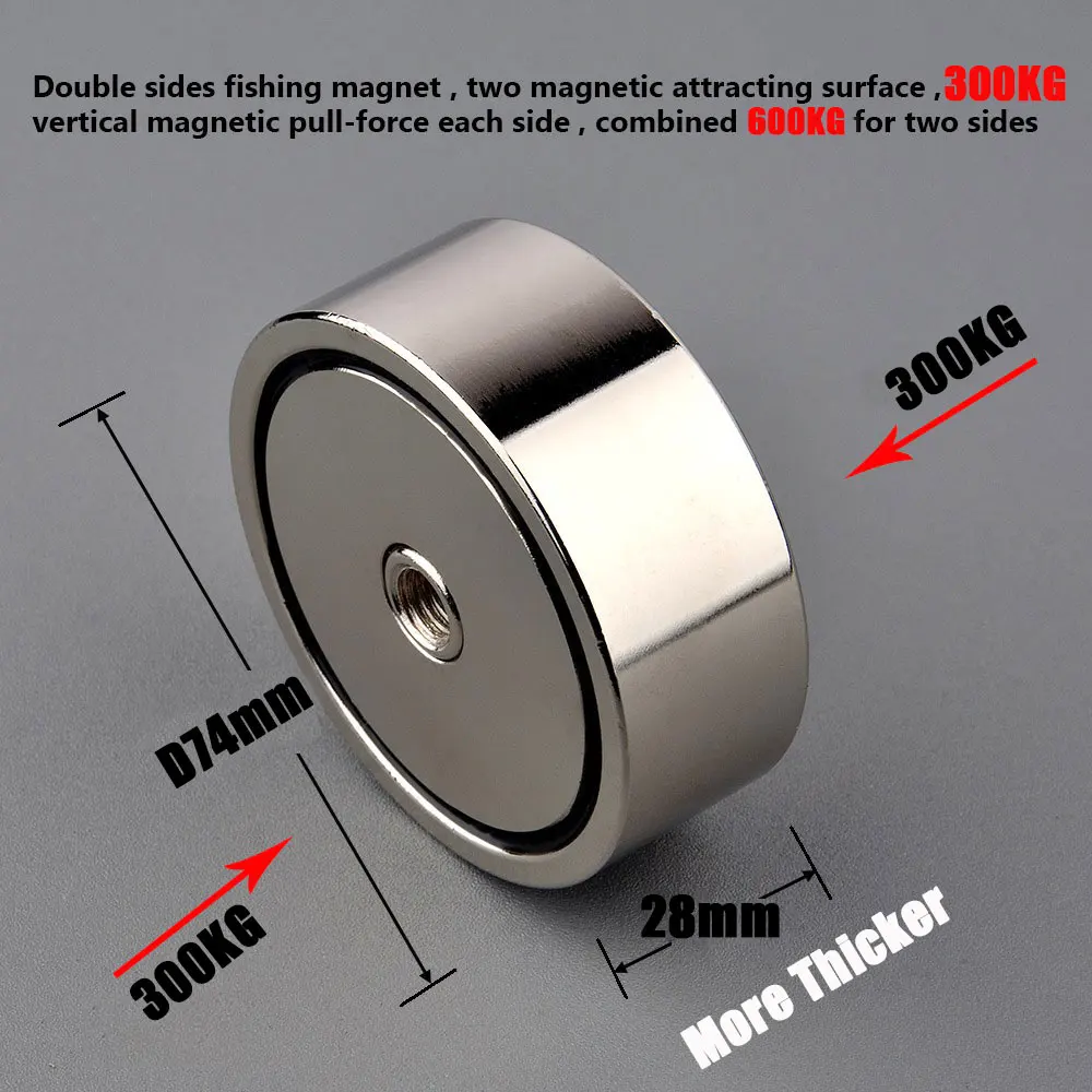 Двухсторонний сильный магнит 300 кг * 2, рыболовный Неодимовый Магн...