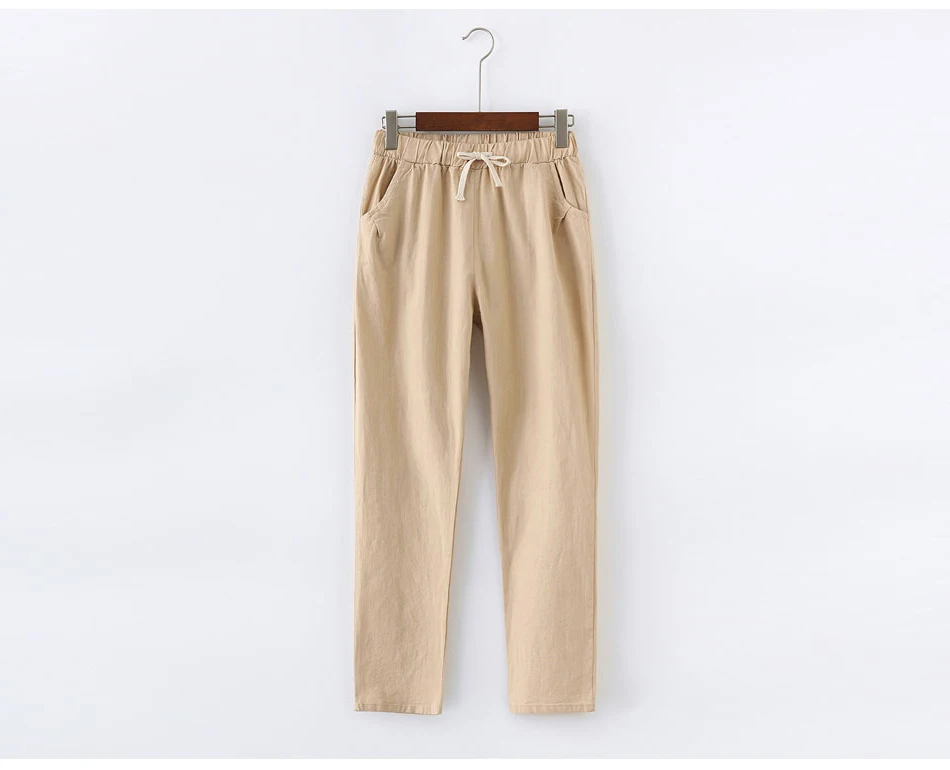Брюки-Капри женские из хлопка и льна, однотонные, свободные, на лето, размера плюс