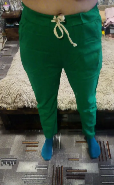 Легкие, летние штаны. На об т 70, об б 90, взяла М, сели чуть свободно, как надо. Резинка эластичная, не давит. Длина на рост 160 по щиколотку. Из недостатков - не соответствие цвета. У продовца Light blue, на картинке сине-зелёные, в жизни холодный зелёный