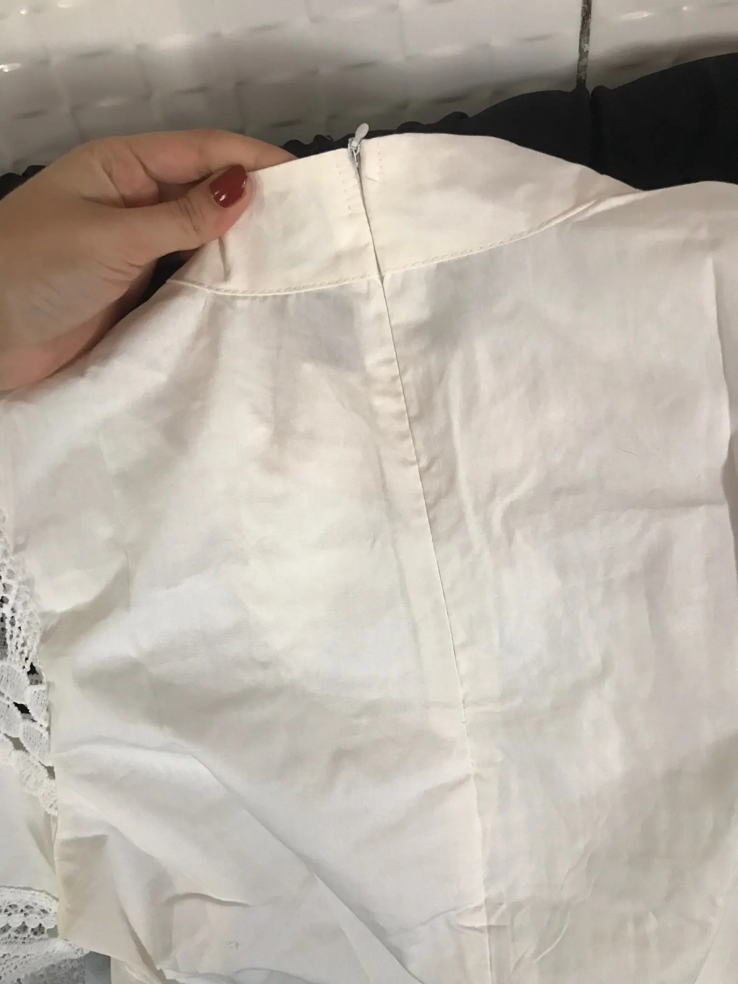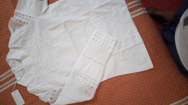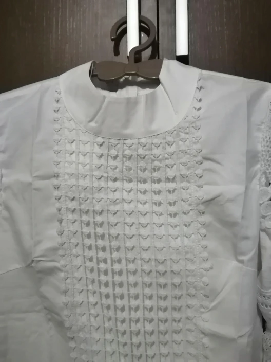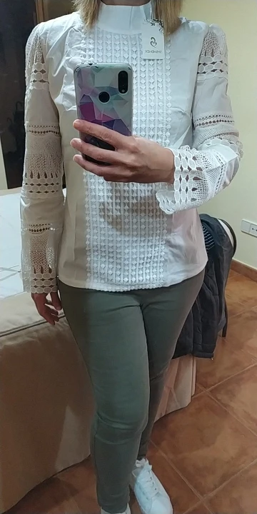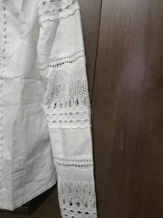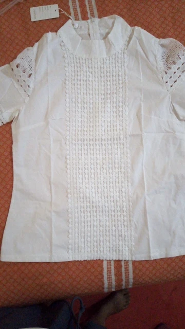 Кружево на красивой блузке .. Мне не понравилась остальная часть ткани, что касается размера, я заказал 4xl и эквивалентно размеру L.