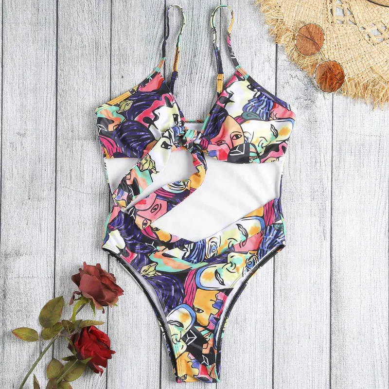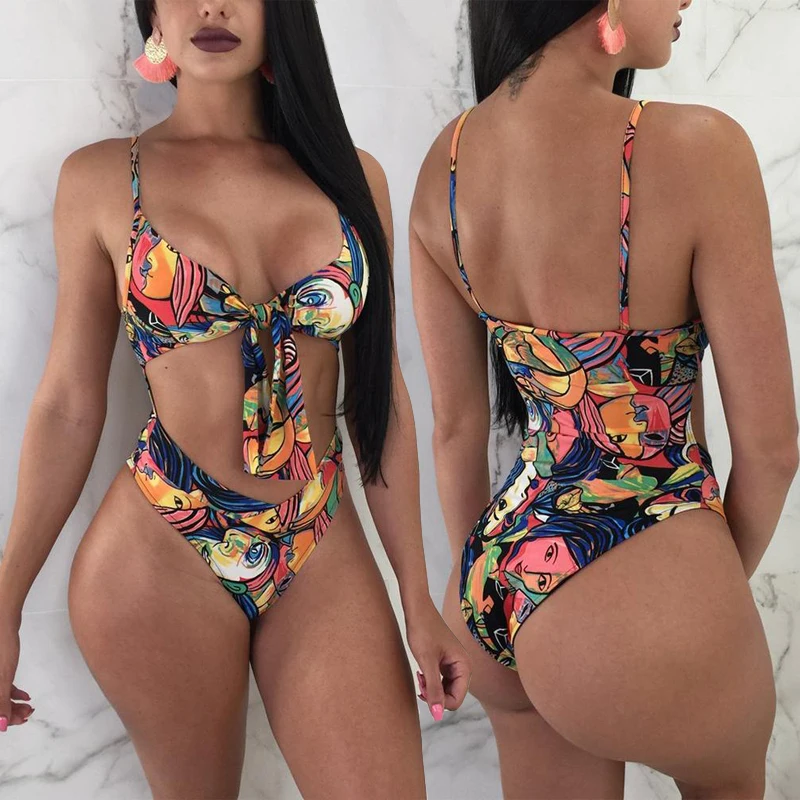 Женский слитный купальник пуш-ап, сексуальный купальный костюм с цветочным принтом, бандажная пляжная одежда, купальный костюм, монокини, 2019