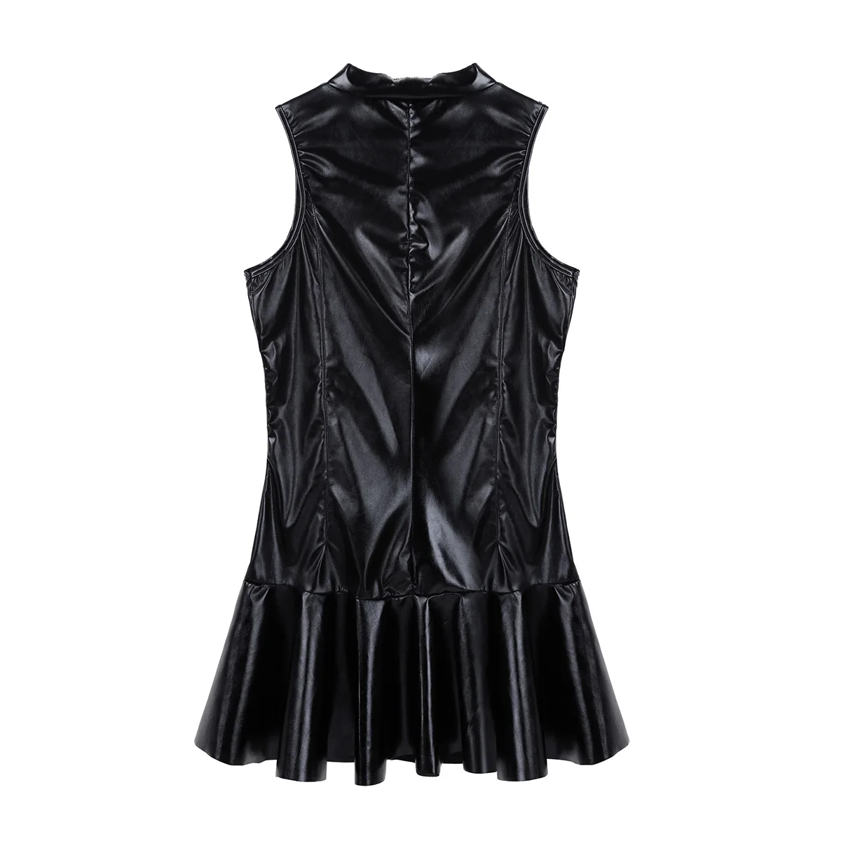 Особенности:Женское модное эластичное мини-платье из искусственной кожи с расклешенным низом, Клубная одежда.Без рукавов, высокий воротник и Длинная черная молния спереди, которая проходит от пупка до шеи, комплектуется стрингами.Мини-юбка в стиле катания, расклешенная от бедра, легкая, мягкая и удобная в носке.Подчеркивает ваши очаровательные формы, отлично подходит для ночного клуба, вечевечерние, коктейля, повседневной носки и т. д.Перед заказом внимательно ознакомьтесь с таблицей размеров. Ручная стирка в холодной воде, сушите в подвешенном состоянии.