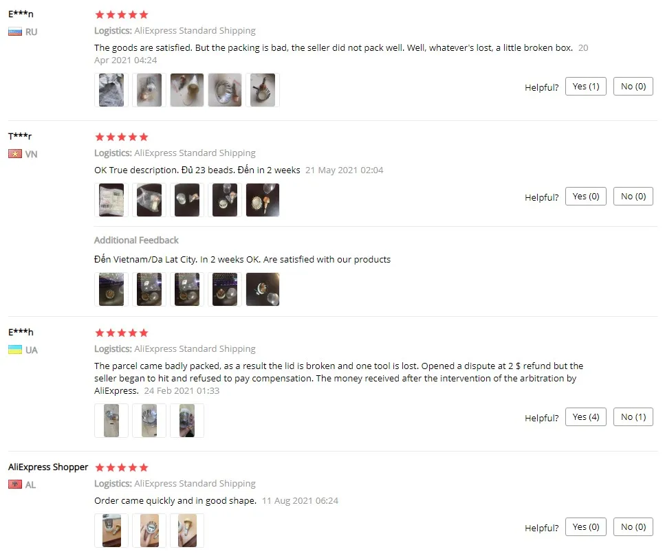 посылка пришла плохо упакованной,как результат разбита крышка и потерян один инструмент .Открыли спор на 2 $ возмещения но продавец начал хитрить и отказался выплатить компенсацию.Деньги получили после вмешательства Арбитража Алиэкспресс.Пять звёзд, потому-что эти отзывы читают первыми.
