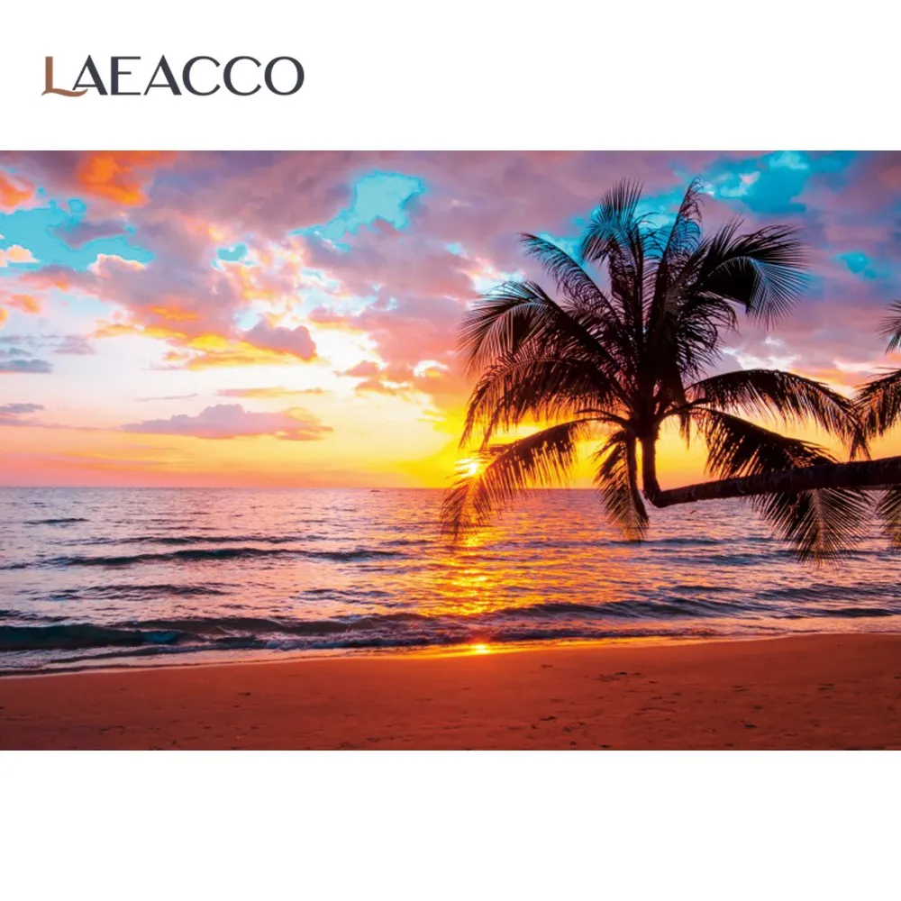 Laeacco Тропическое Розовое Небо закат светящиеся морские пляжные п...