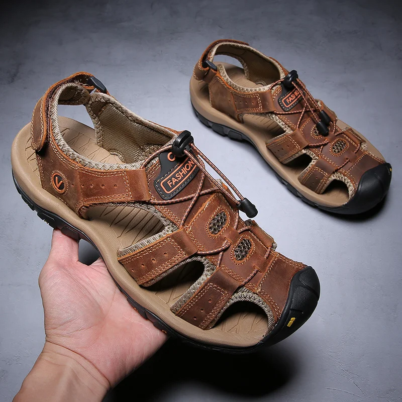Сандалии мужские кожаные в римском стиле, модные пляжные босоножки, для прогулок, летняя обувь, размеры 39-48