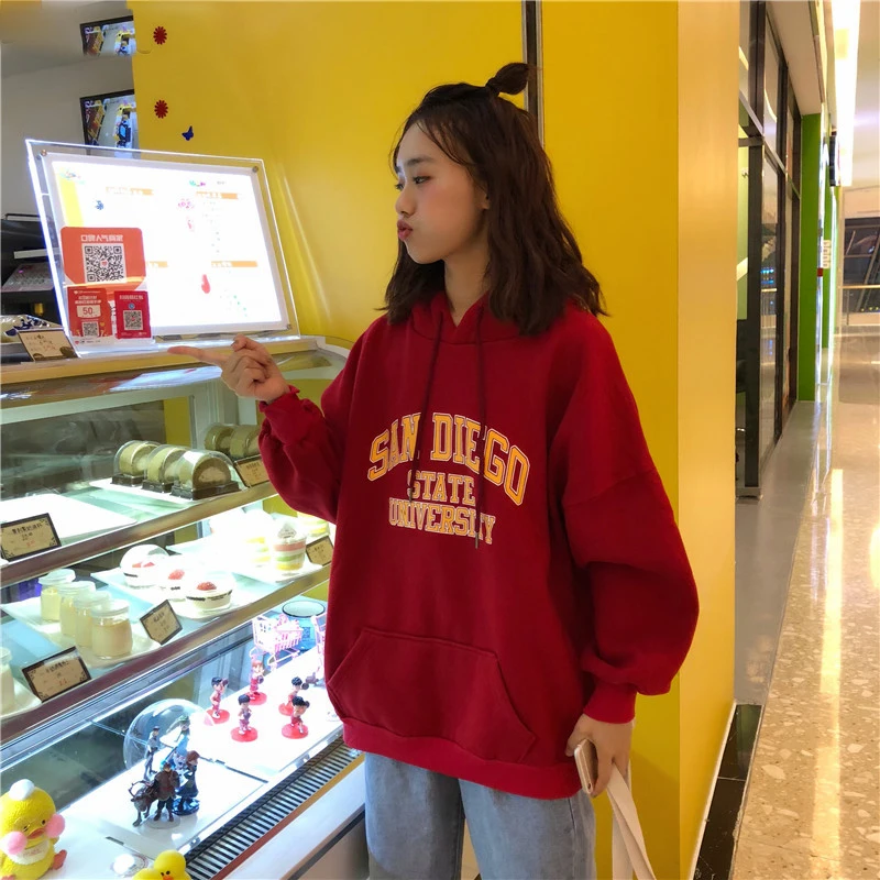 Женские толстовки с капюшоном, теплые, плотные, вельветовые, с буквенным принтом, свободные, с длинным рукавом, в Корейском стиле, в стиле Харадзюку, для отдыха