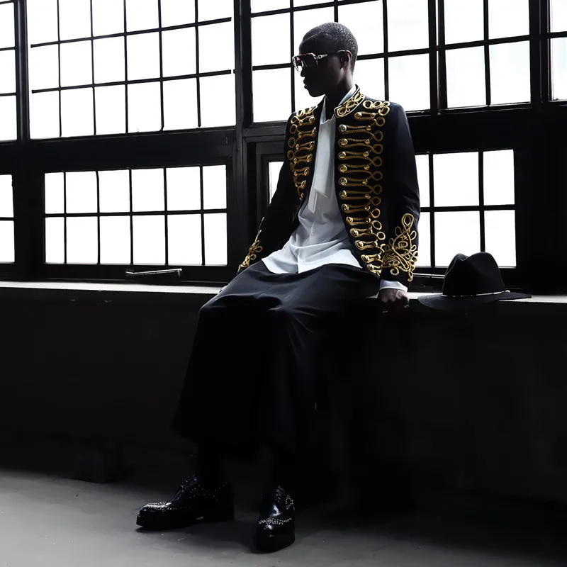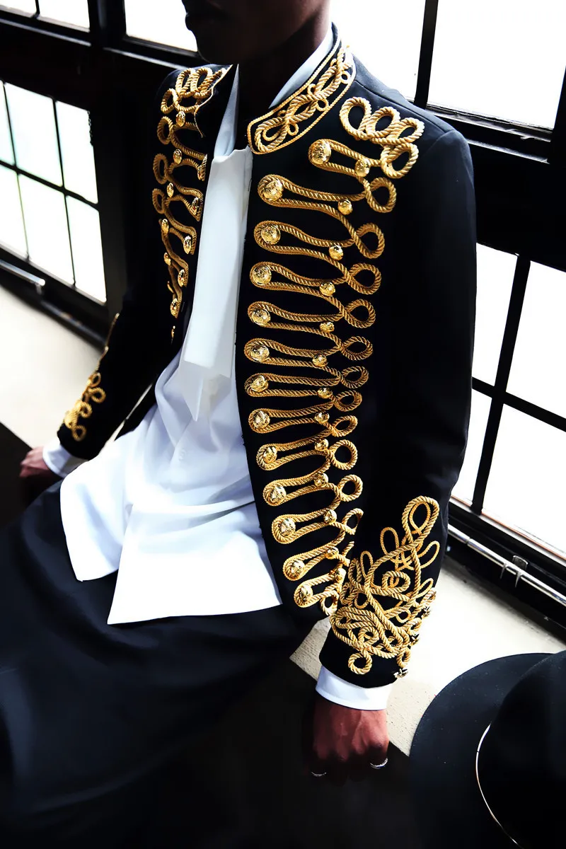 Мужской Стильный Блейзер, черная Золотая куртка с вышивкой, пиджак ...