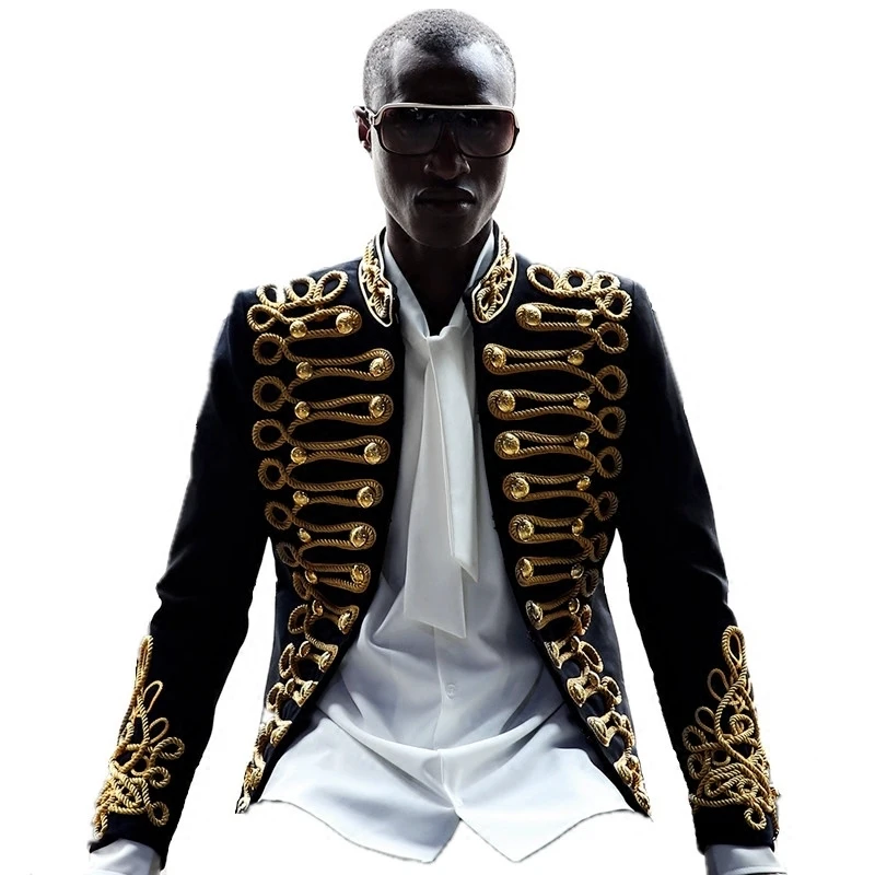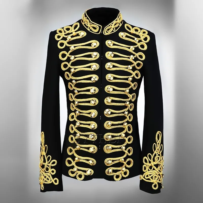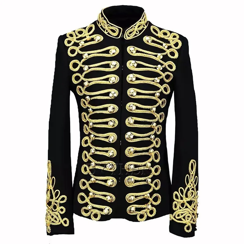Куртка с золотой вышивкой, пальто, Мужской Стильный Блейзер, черный костюм певицы для ночного клуба, Европейский стиль, сценическая одежда для студии C