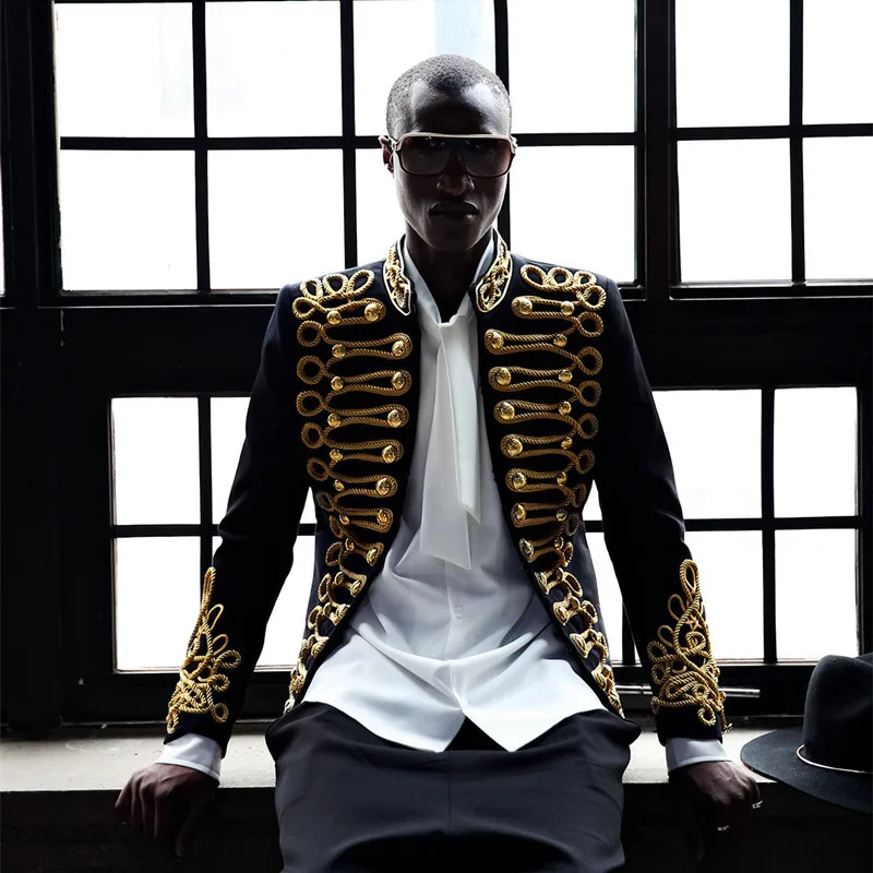 Черный золотой ночной клуб Мужской певец и ведущий костюм Европейск...