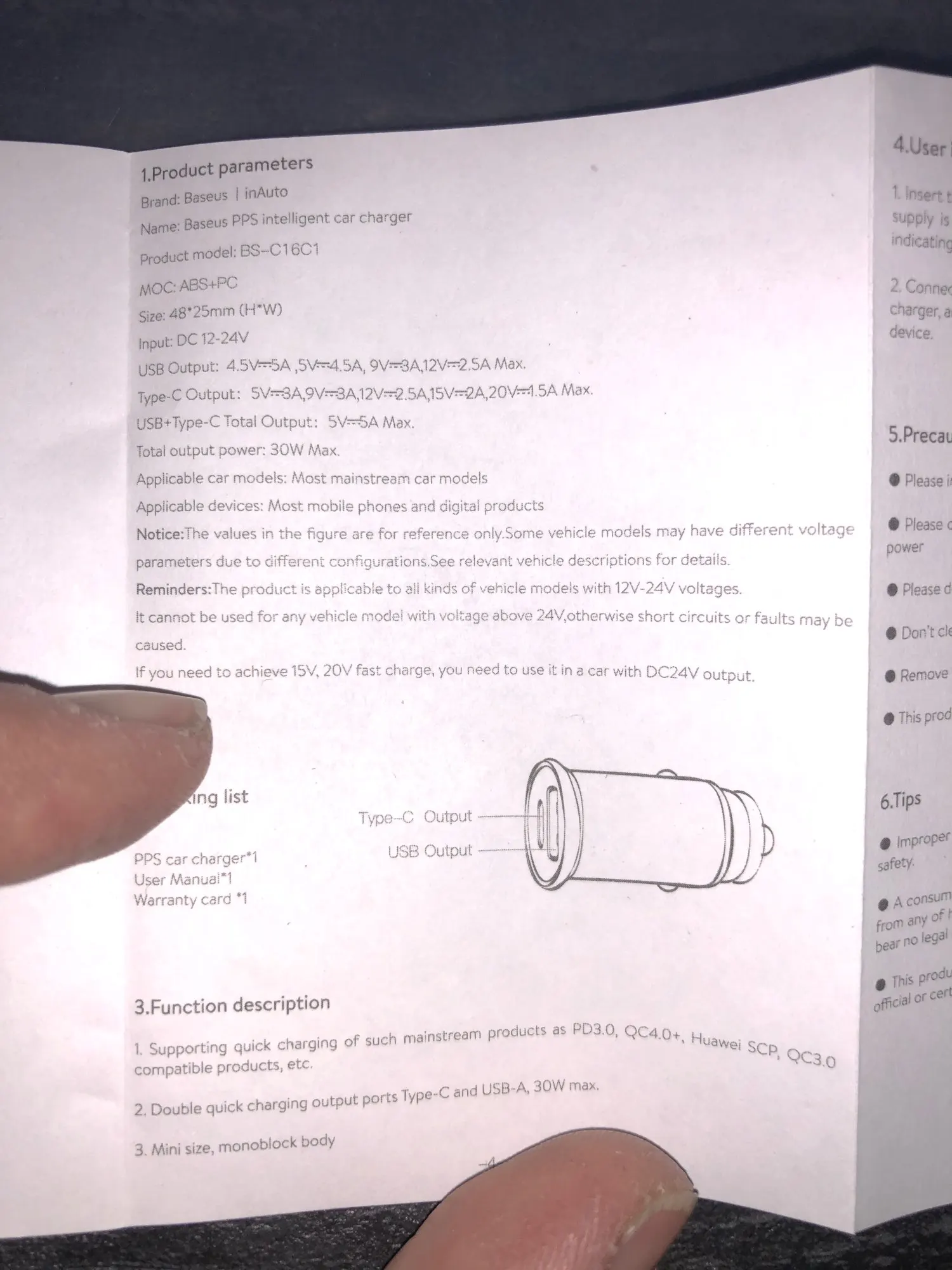 14 дней в Испанию. Быстрая и хорошо упакованная доставка и хорошие характеристики, не проверка, инструкции на английском (и китайском) устройство макс. 30 Вт, но Быстрая зарядка 15 В и 20 в доступна только в автомобиле/грузовике 24 В, то есть; Доступно только 15 Вт (5 В), 27 Вт (9 в) и 30 Вт (12 В) Для быстрой зарядки в обычном автомобиле, таком как большинство 12 В, через USB Type-C или USB-A с помощью протокола QC4,0 PD3.0 QC3.0 Huawei SPC.