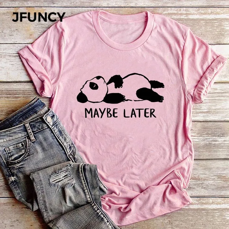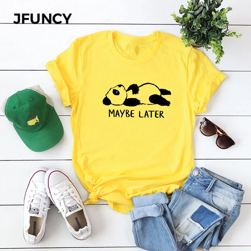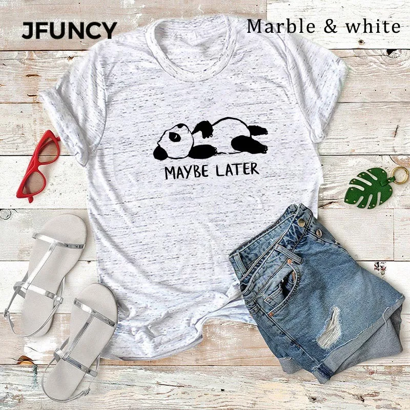 JFUNCY, 100% хлопок, женская футболка, лето 2022, милые женские футболки с принтом панды, Женские топы с коротким рукавом, женская футболка