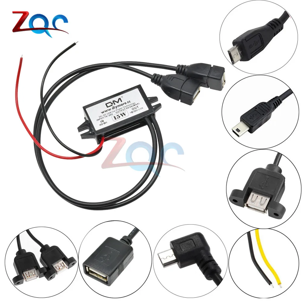Преобразователь питания автомобильный, DC-DC, 12 В до 5 В, 3 А, 15 Вт, Micro Mini USB, понижающее напряжение, выходной адаптер, низкий нагрев, автоматическая защита