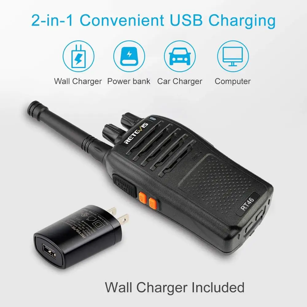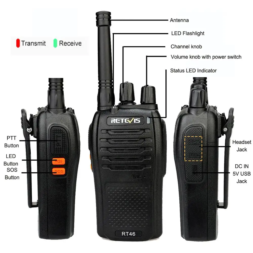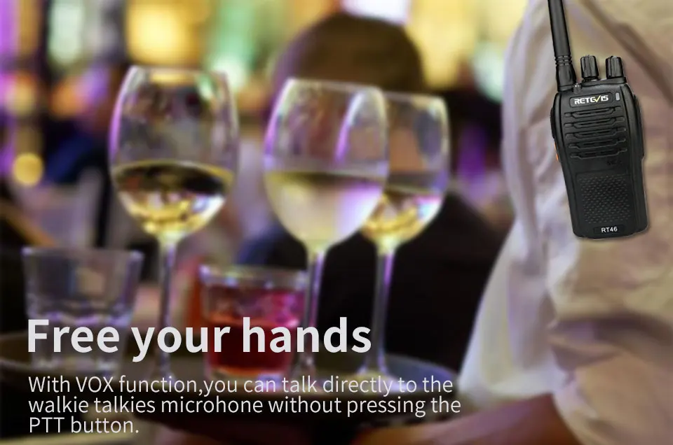Retevis RT46 walkie talkies это такое профессиональное радио, которое вы можете быть уверены в использовании и не нужно беспокоиться о проблемы с лицензией.