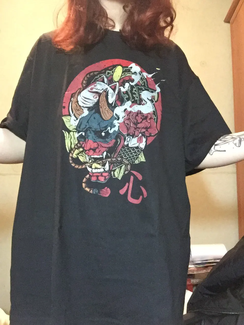 Футболка очень приятная на ощупь и к телу, качество рисунка, так же, отличное. По размеру подошло идеально ✨ Возле рисунка есть небольшое пятнышко, но это не критично и, думаю, отстирается, или сотрётся во время носки. По итогу - футболкой довольна