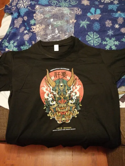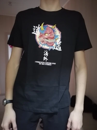 футболкой очень доволен смотрел по отзывам я не эксперт в выборе одежды,но всем кто посмотрел из родных сказали что хорошое качество рисунок качественный доставка быстрая