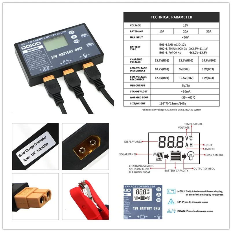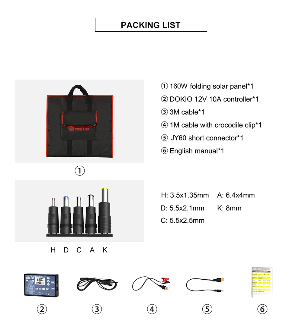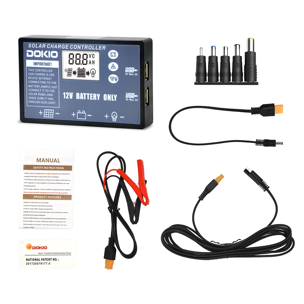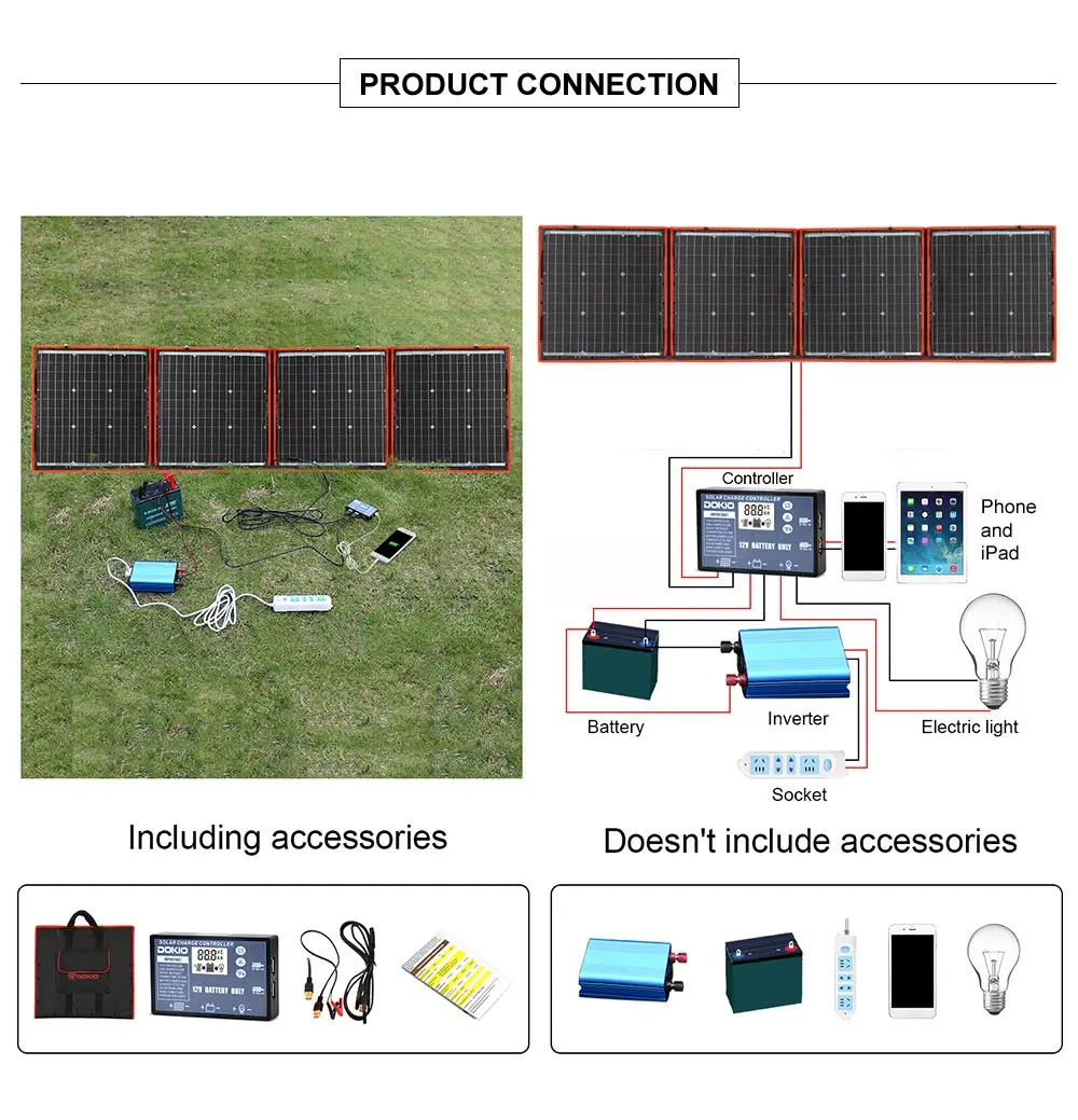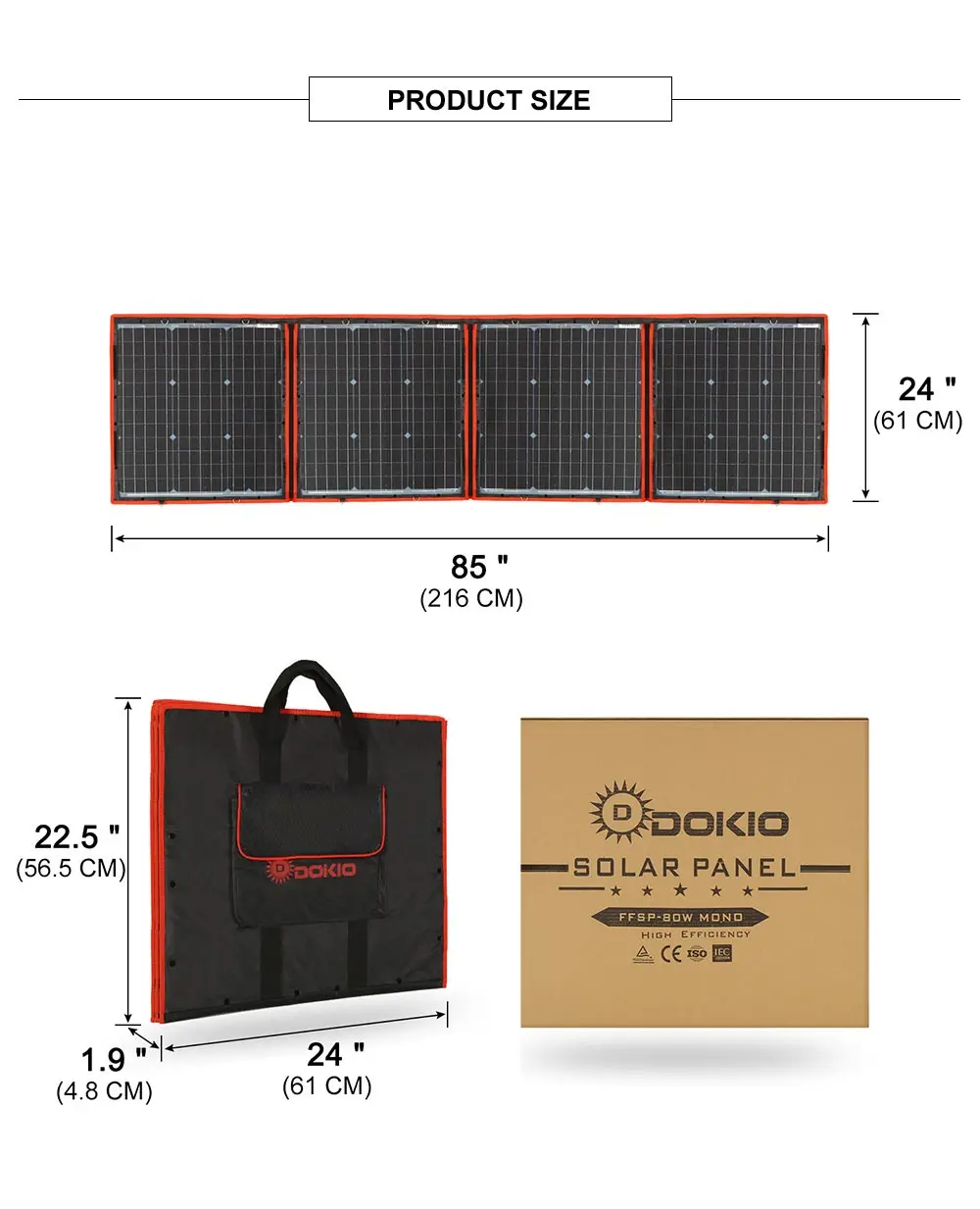 Солнечная панель 150Вт, 18В, Dokio, монокристаллическая, портативная, складная, с зарядным устройством 12В, для использования в машине, на лодке, в кемпинге