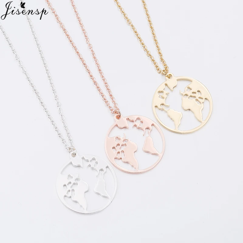 Женское Ожерелье из нержавеющей стали Jisensp, простое ожерелье с изображением карты мира, круглые ожерелья с подвесками, подарок на день рождения