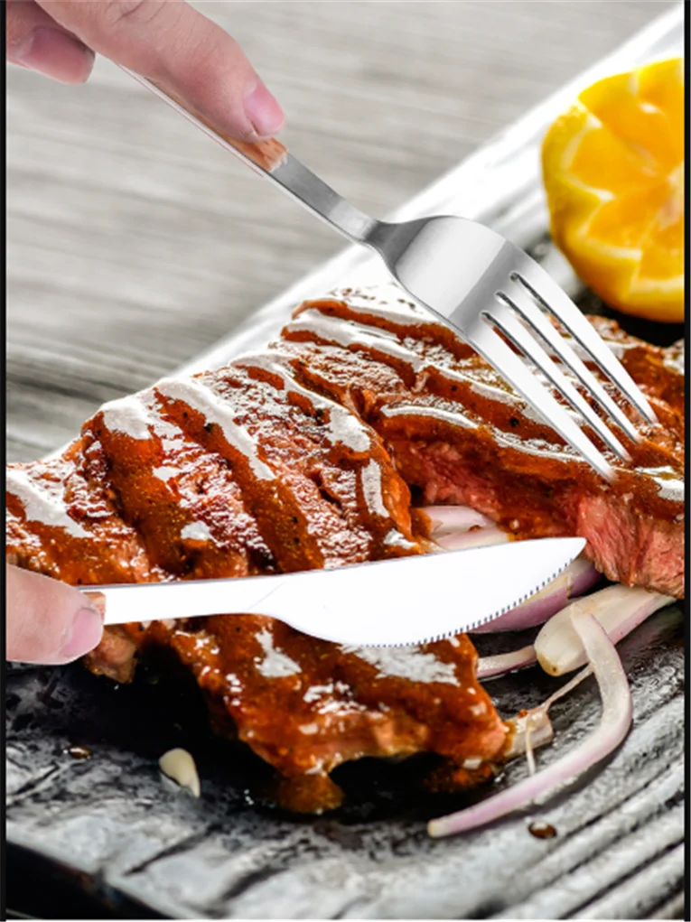 Творческие наборы посуды, деревянная ручка, стальной нож, вилка, ложка из нержавеющей стали, экологически чистые столовые приборы