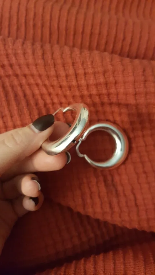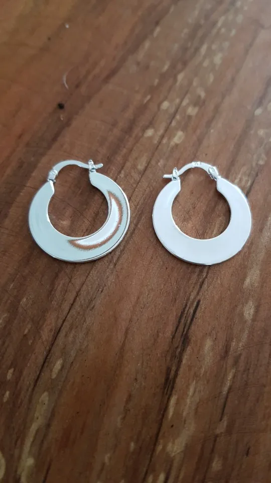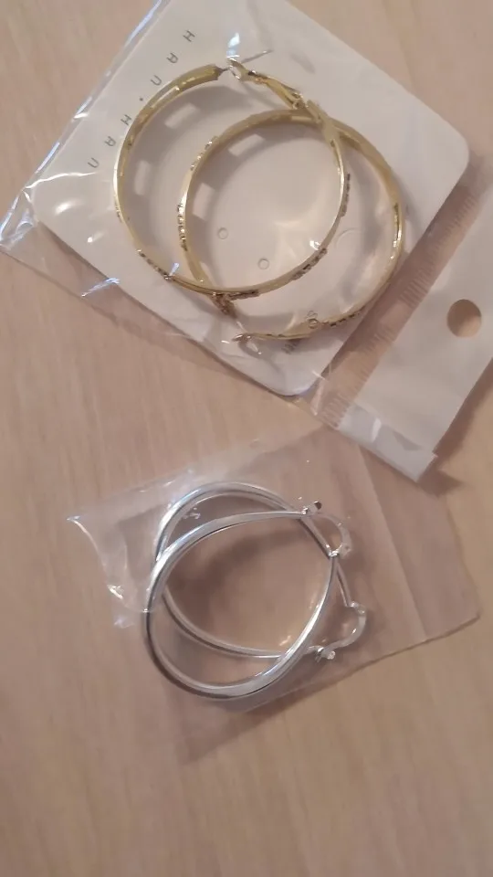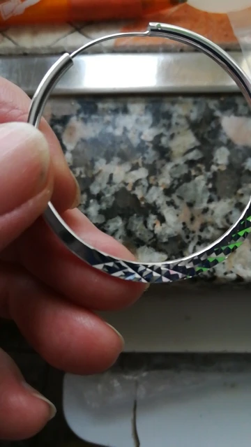 Серьги точно такие же, как на фото, я заказал 50 мм обручи, они немного тяжелые, если вы не привыкли к ним, но они хорошие. Единственное, что плохо, это то, что таб не получает слишком много, поэтому закрытие не очень безопасно, но я все еще не думаю, что они падают. У них есть бренд 925 пробы. Если я вспомнила, я вернусь, когда зайду с ними некоторое время и скажите, если они ржавеют. Они хорошо упакованы в пластиковый и пузырьковый бумажный конверт и прибыли в Испанию в течение двух недель.