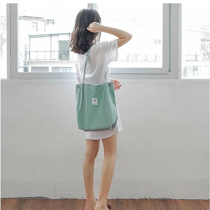 Женская сумка Hylhexyr, многоразовая сумка для покупок, однотонные тканевые сумки, портативная Холщовая Сумка через плечо с застежкой, удобная сумка-тоут в простом стиле