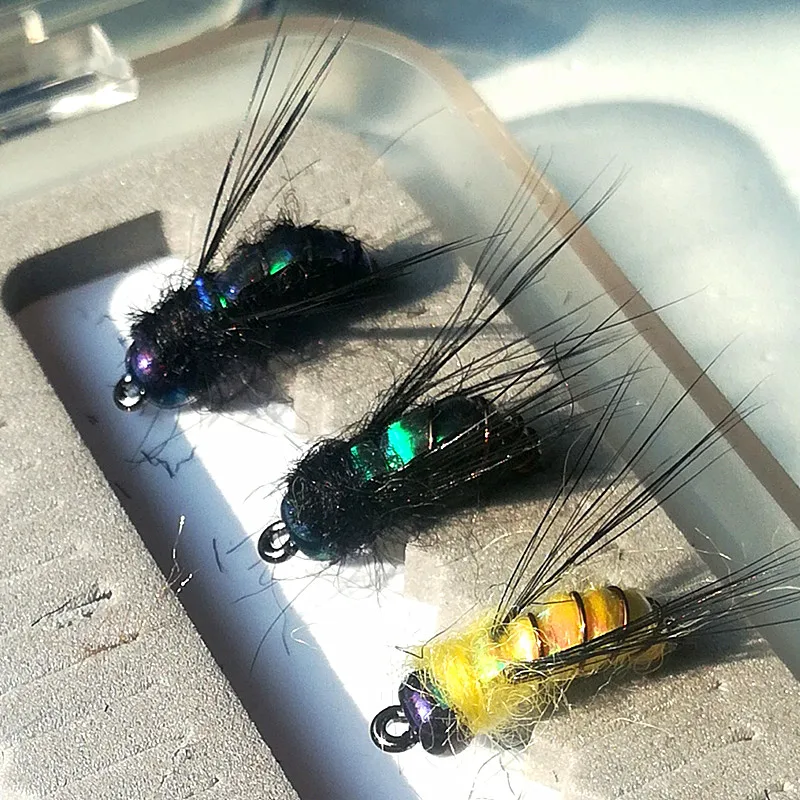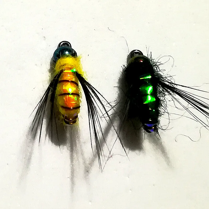 KKWEZVA 20 шт . приманка для рыбалки #8 черные крючки материал яркая кожа пчела Нимфа Спиннер сухая муха насекомое приманка форель муха