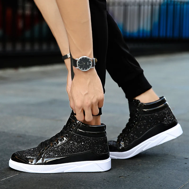 2022 мужская повседневная обувь из искусственной кожи в стиле хип-хоп; Модные мужские кроссовки золотого цвета; Серебристые мужские кроссовки из микрофибры с высоким берцем и блестками; Chaussure Tennis