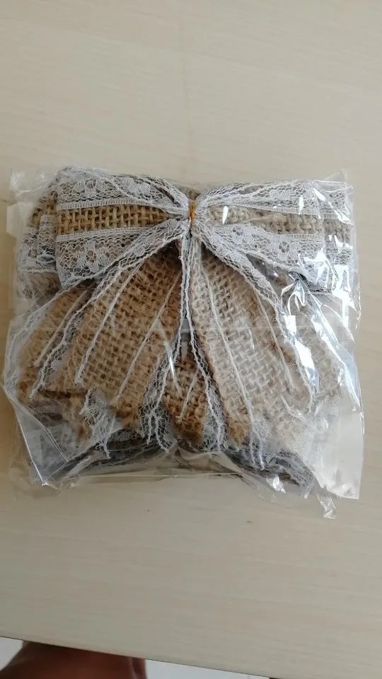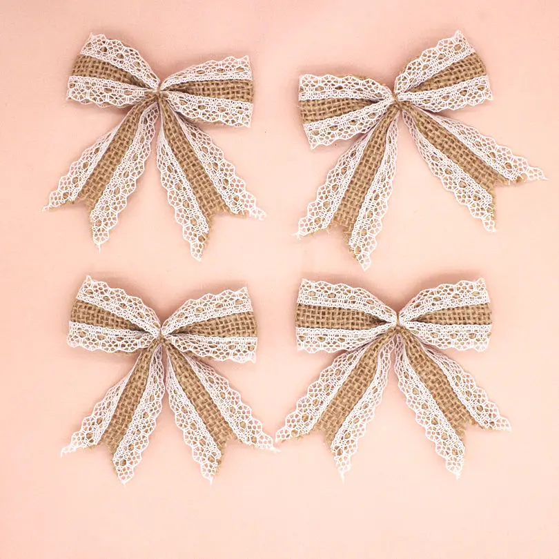 10pcs Vintage Natural Jute Burlap Hessian Bows Lace Ribbon Trim Rustic Wedding Decoration Party Home Decor