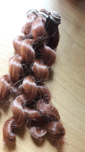 Красивые волосы в соответствии с объявлением для оттенка и шелковистости фитилей. Устойчив к жаре. С другой стороны, провод заслуживает того же оттенка, что и волосы для невидимого рендеринга. Я делаю парики для маленьких Дарлингов (парик 7-8): вам нужно 2 с половиной штуки, то есть 2m50, если вы хотите сделать качественный парик больше, чем узкие ряды. Для куклы (парик 6-7) достаточно 2 м или 2 штуки.
