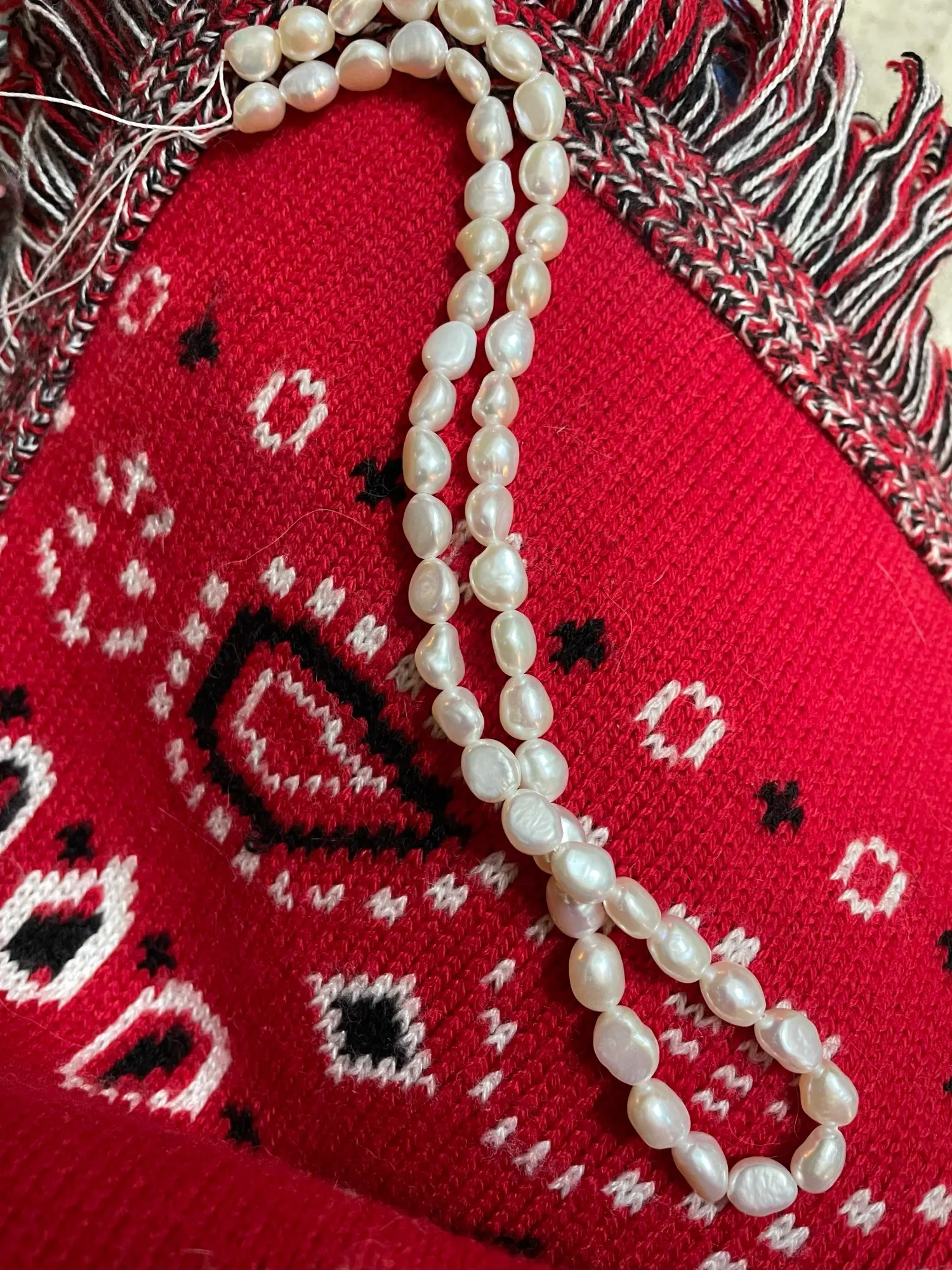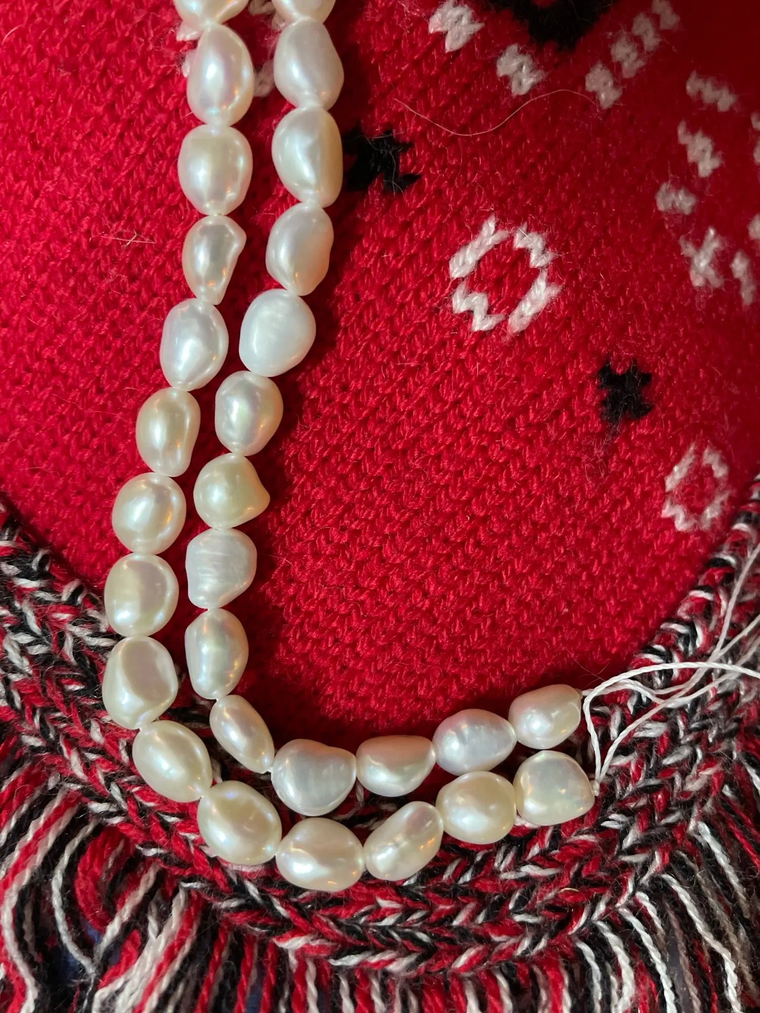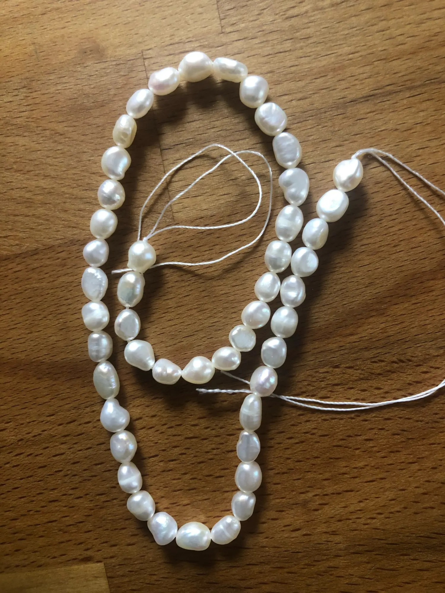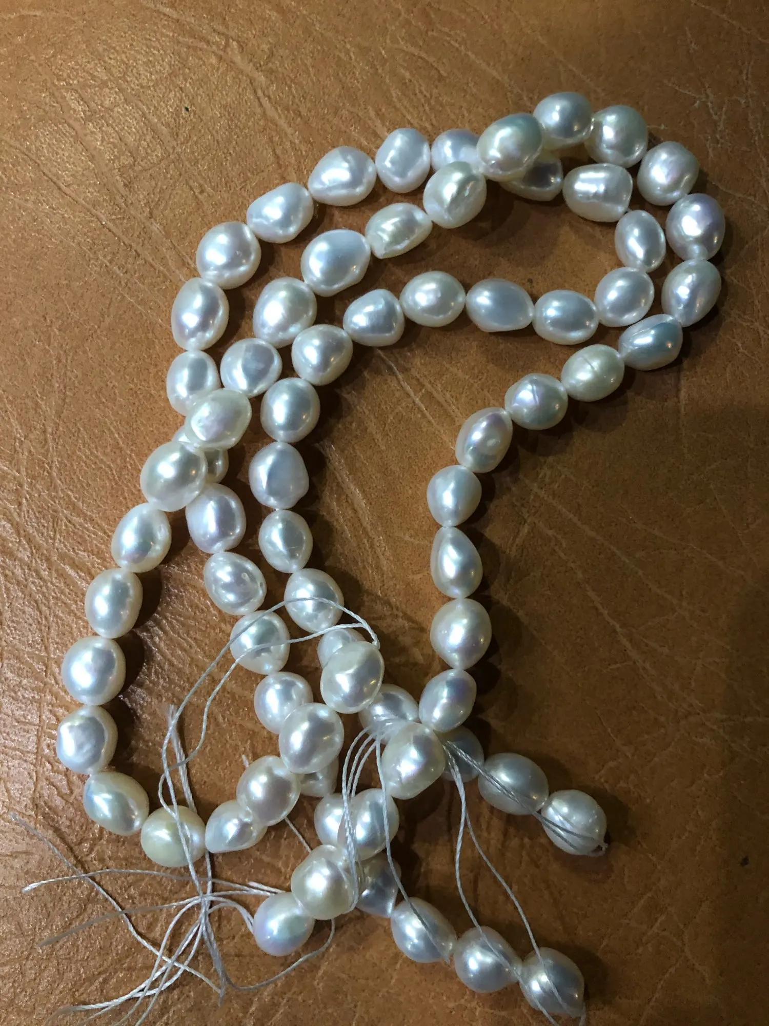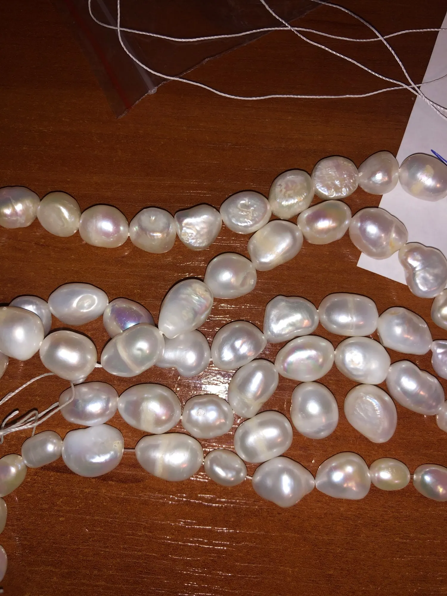 Жемчужины крупные, тяжелые, но просто на нитке, без застежки