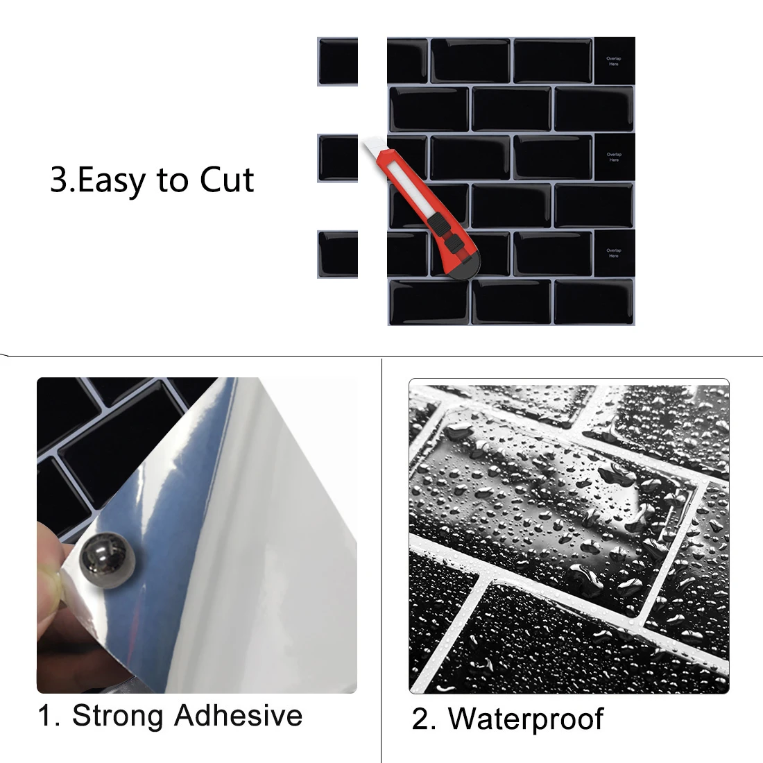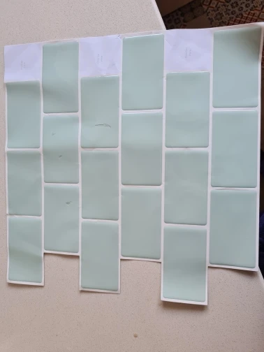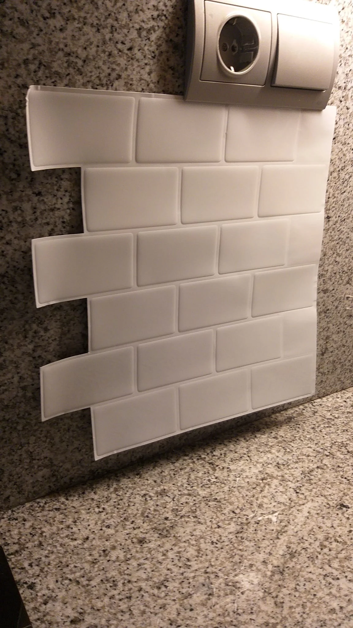 Очистку и наклеивание плитки можно использовать на всех гладких, чистых и сухих поверхностях, таких как окрашенный гипсокартон или даже прямо над керамической плитой. Просто снимите и приклейте, легко установить. Все, что вам нужно, это линейка, карандаш, тряпочка и ножницы. Этот проект сэкономит вам время и деньги по сравнению с реальной плитой. Не беспокойтесь, что плитка не подходит по размеру Вашей стены, так как ее легко разрезать.