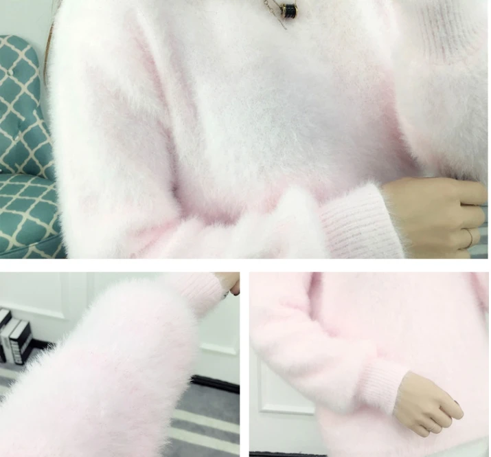 Пуловер USWMIE, кашемировый, с Мохеровым мехом, с рукавами-фонариками, свободный, удобный, 2020