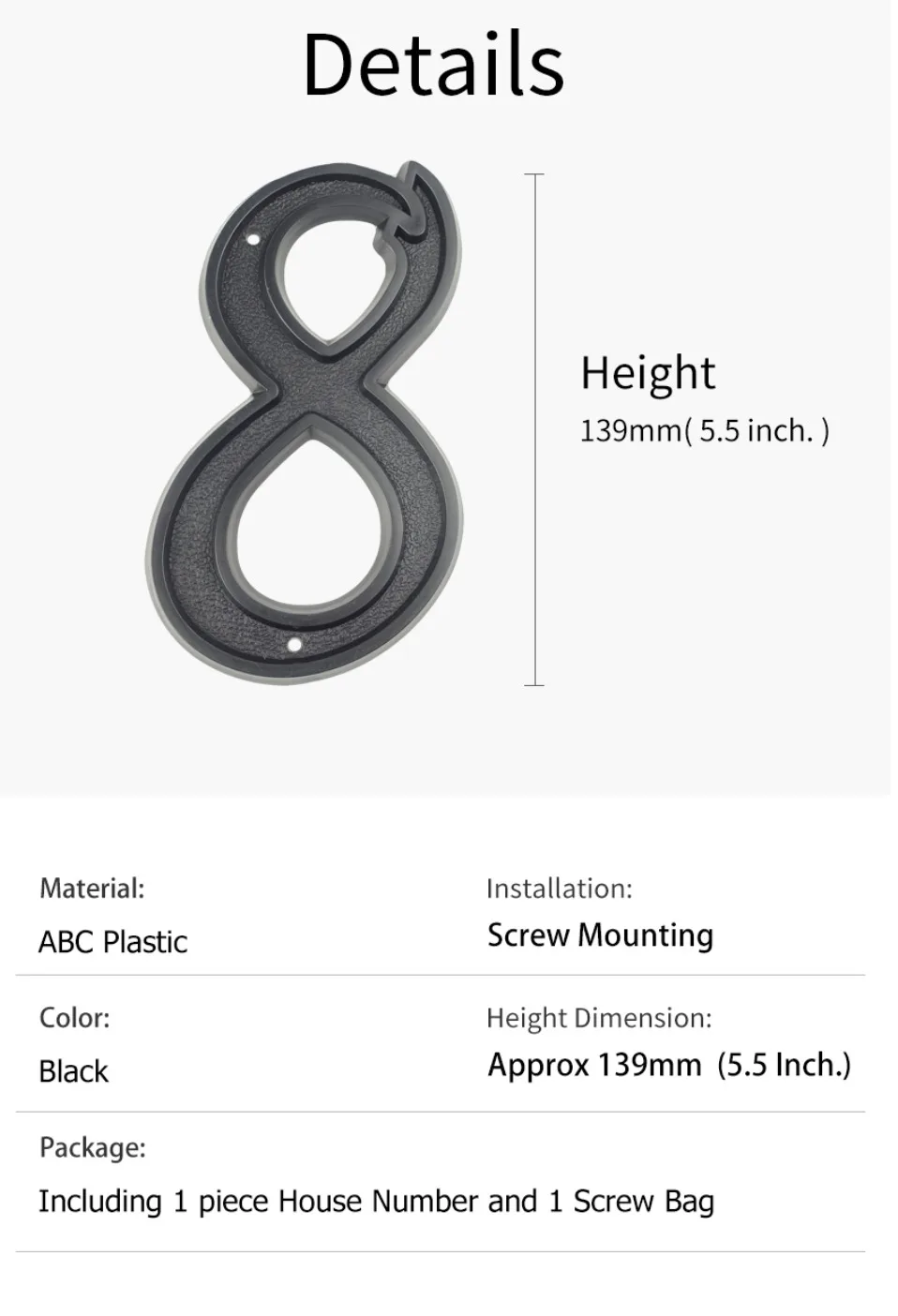 Большой номер дома открытый 139 мм цифры на дверь высота двери номер ABS пластик черный адресные Номера для дома 5-12 дюймов. #0-9