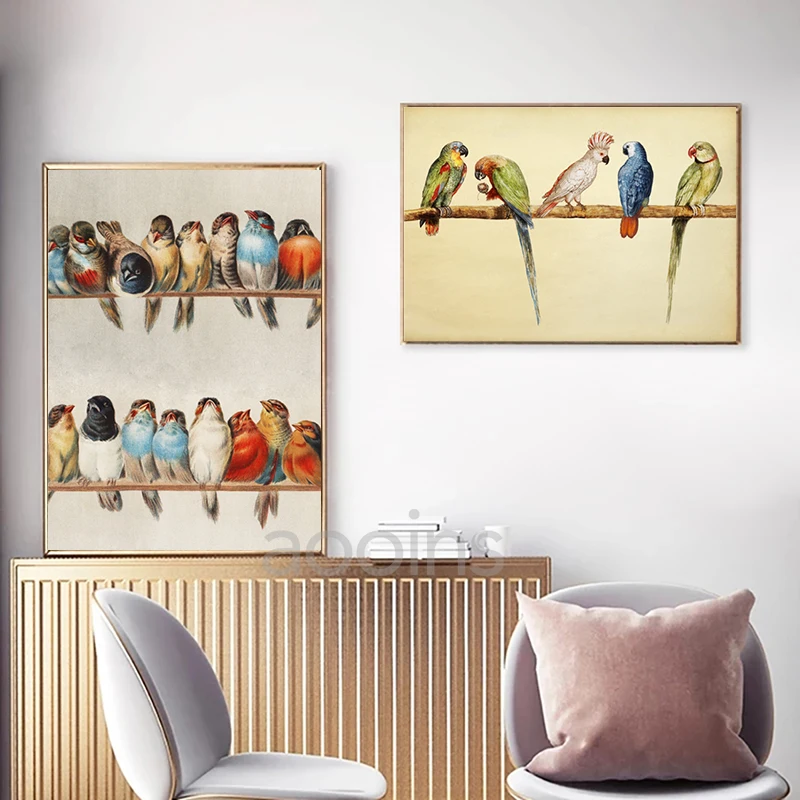 PurposeRetro Bird Illustration Art Painting Wall Picture Home Decoration