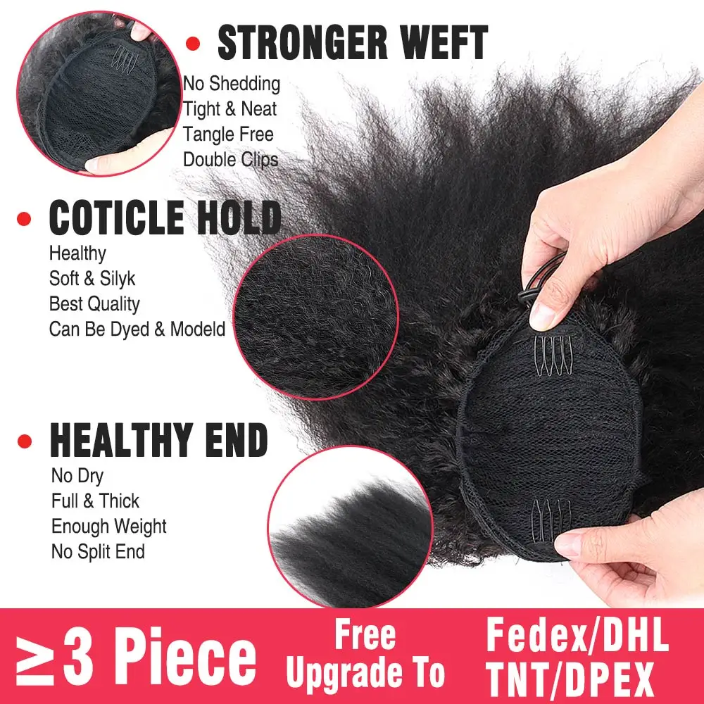 Курчавые прямые волосы для конского хвоста, перуанские человеческие волосы на заколке для наращивания, грубые натуральные волосы Yaki, волосы без повреждений SalonChat, человеческие волосы на заколке