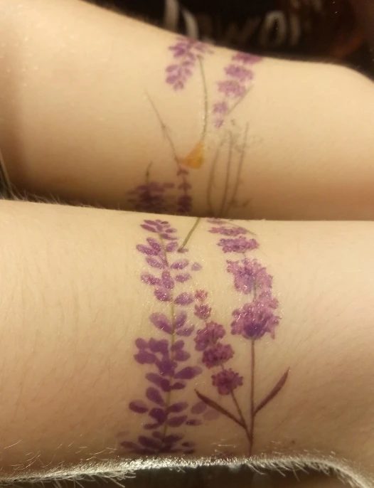 Акварельные Лавандовые тростниковые татуировки с цветами Утренней с...