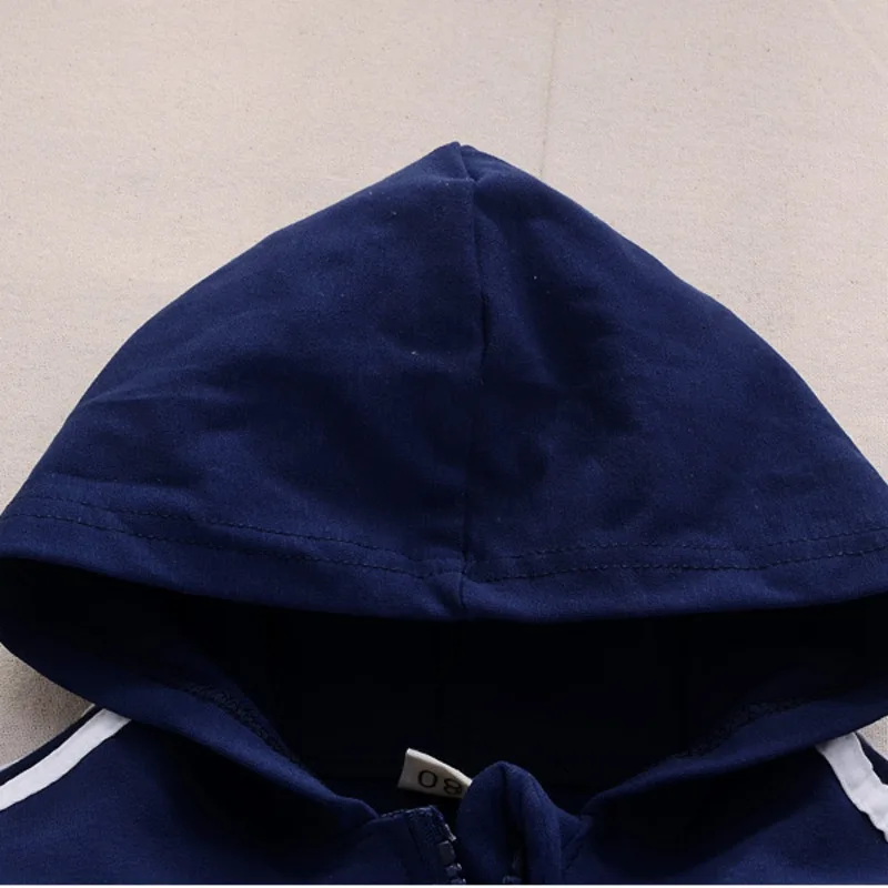 Костюм тонкий, маленький. На капюшоне нет затягивающих шнурков. На штанах и куртке карманы. На куртке также есть имитация белой футболки навыпуск. Очень маленький по сравнению с другим костюмом 120 роста. На 3 года наверное пойдёт.