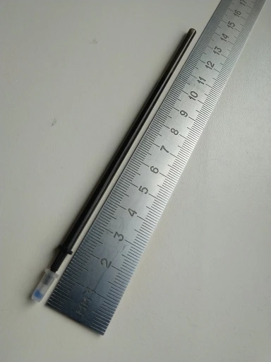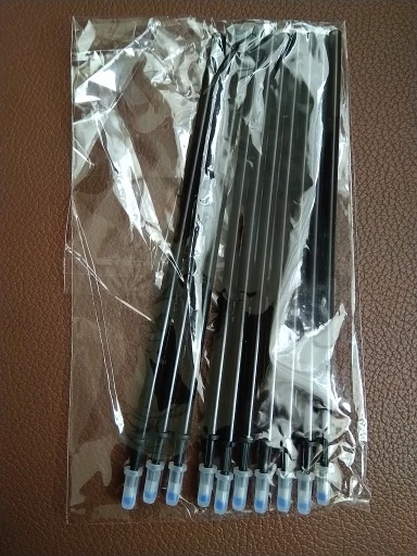 Магазин роздавав купони,тож і я скористався,взяв 10 стержнів з чорними чорнилами. Довжина стержнів 13 см, заповнення чорнилом на 10 см. Сама трубка стержнів досить грубостінна,тож чорнила там не дуже багато,але за неповних 4 гривні,які я сплатив,то вважаю доброю покупкою.
