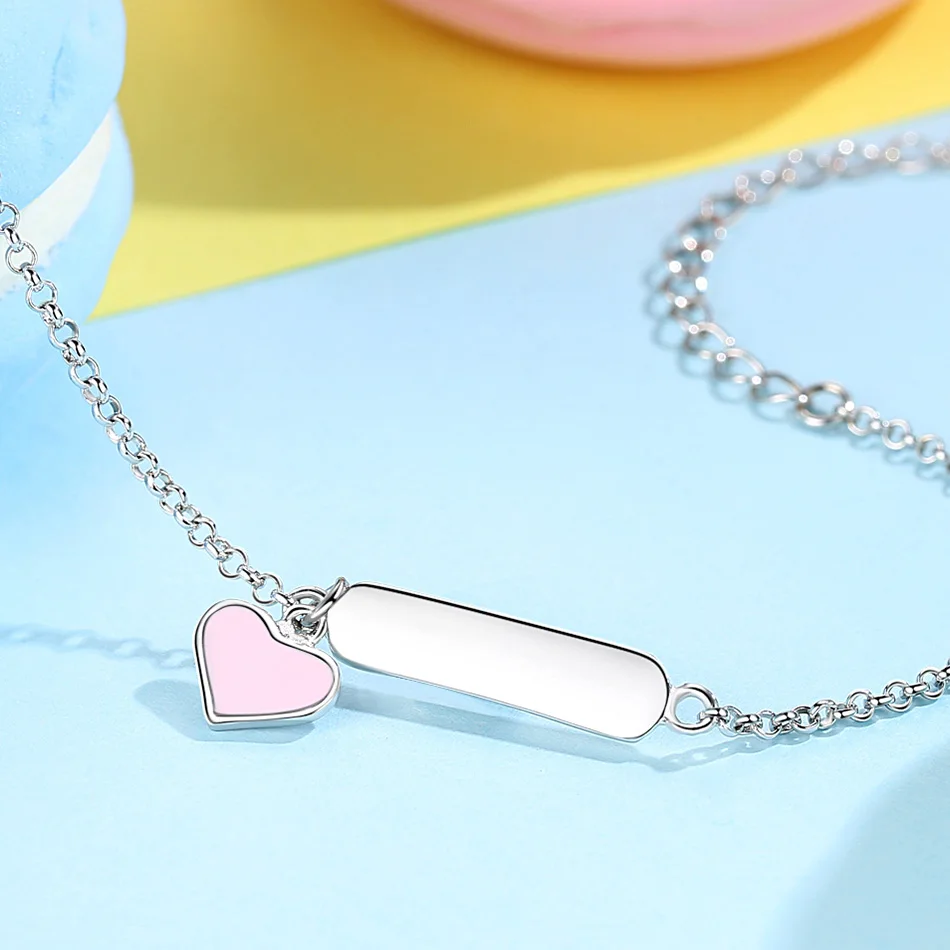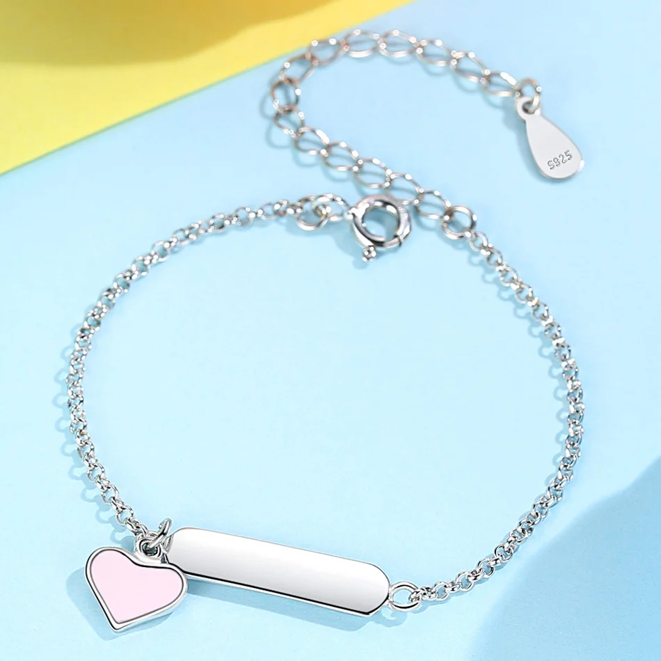 Браслет детский из серебра 925 пробы, с розовым сердцем