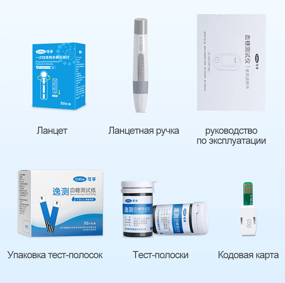 Тест-полоски для определения уровня глюкозы в крови Cofoe Yice, 50100 шт.