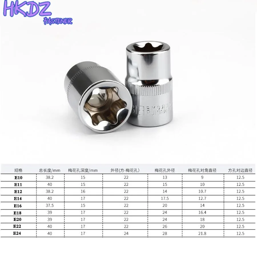 Розетка Torx Star E10 E11 E12 E14 E16 E18 E20 E22 E24, ручные ремонтные инструменты, квадратное отверстие, 1 шт., 12 дюйма