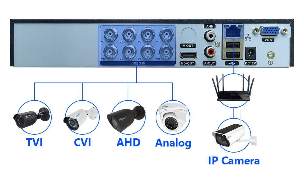 Цифровой видеорегистратор Movols, 8 каналов, 5 МП, H.265, AHD, 5 в 1
