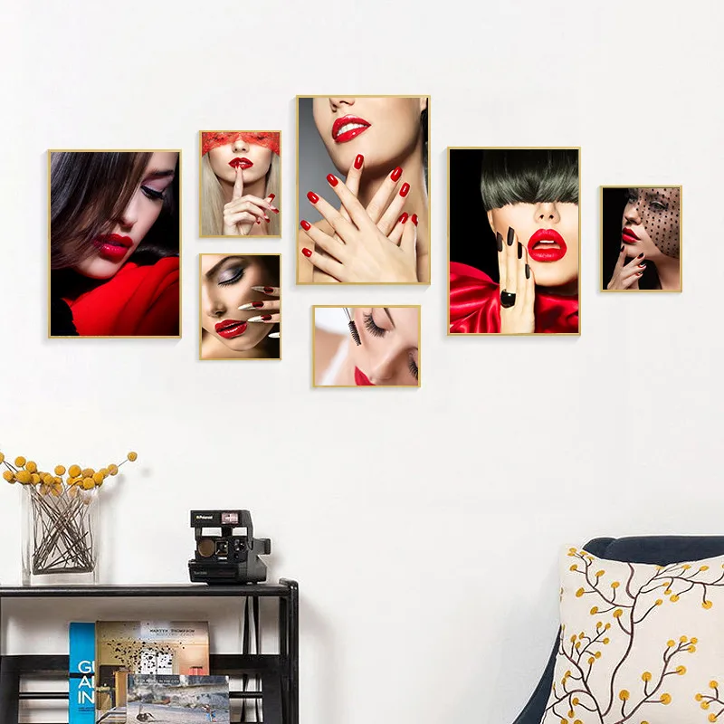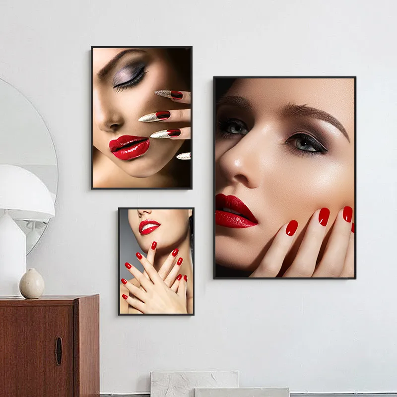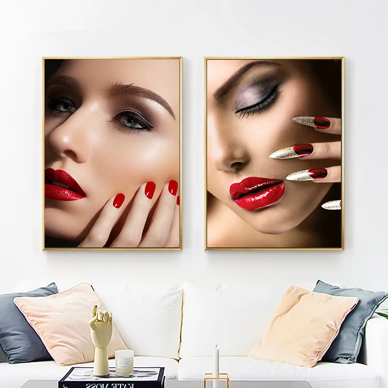 Красная макияжная настенная живопись на холсте для салона красоты х...