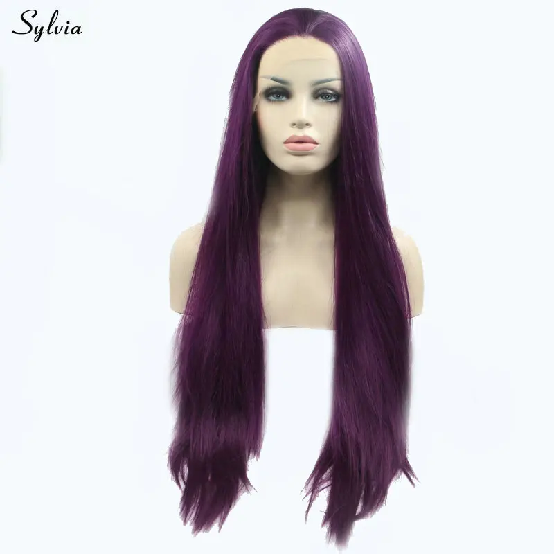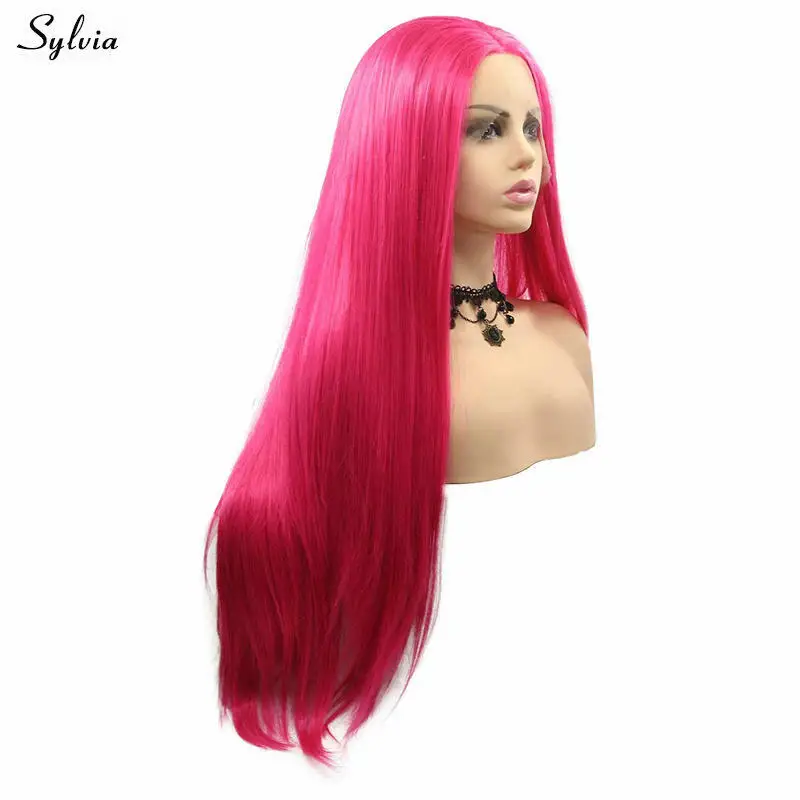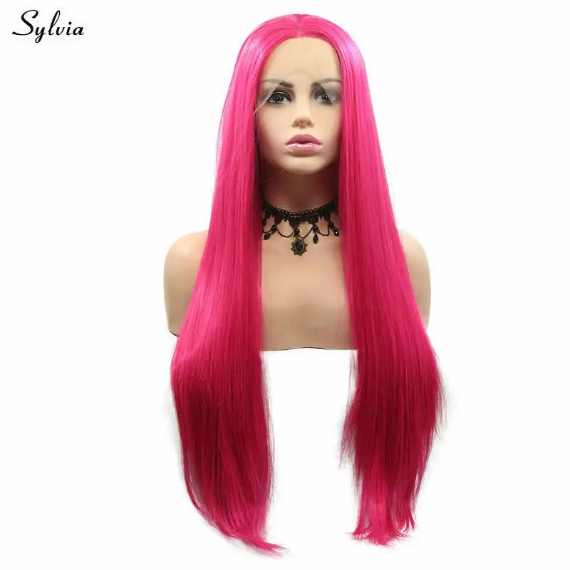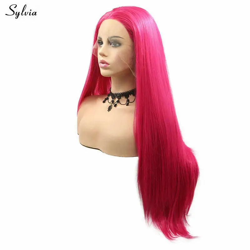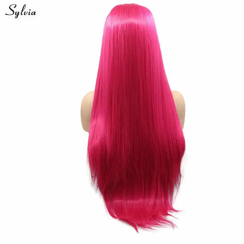 Сильвия косплей парик розовый красный/фиолетовый кружевной передний парик шелковистые прямые термостойкие синтетические парики для женщин Макияж вечерние длинные волосы