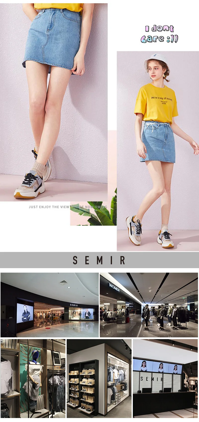 Юбка SEMIR Женская длиной до колен, винтажная джинсовая юбка с разрезом и разрезом, лето размера плюс