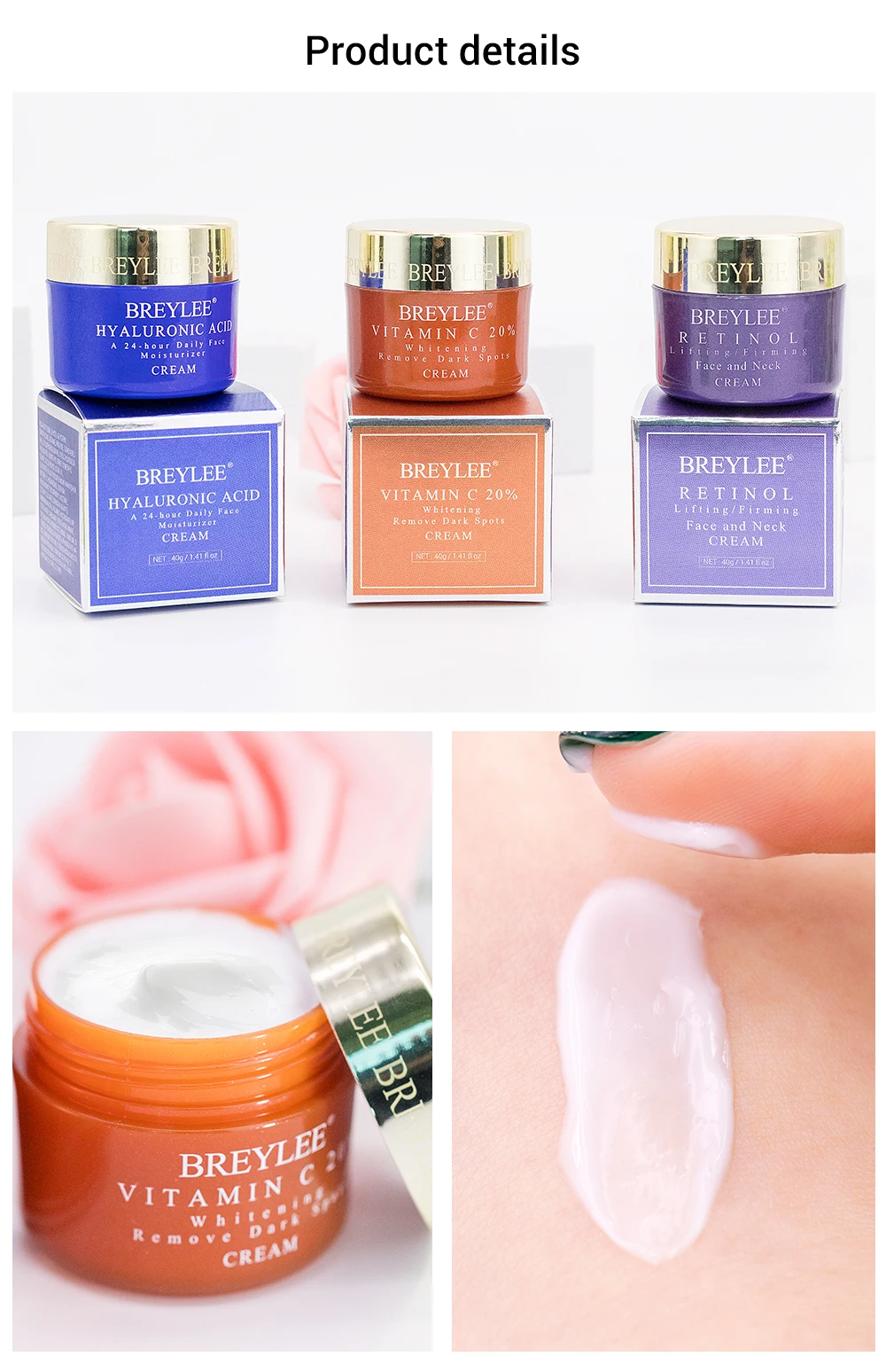 BREYLEE крем для лица Витамин C Гиалуроновая кислота увлажняющая ретинол увлажняющий крем для лица против морщин и отбеливание, лечение акне дневной крем по уходу за кожей 40g