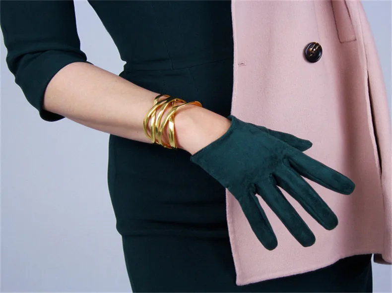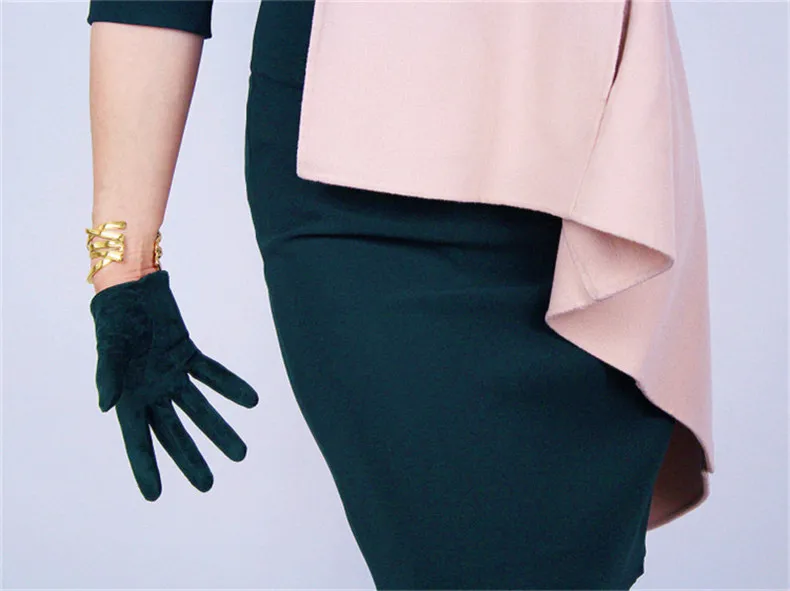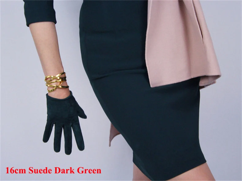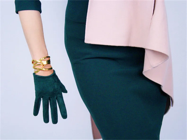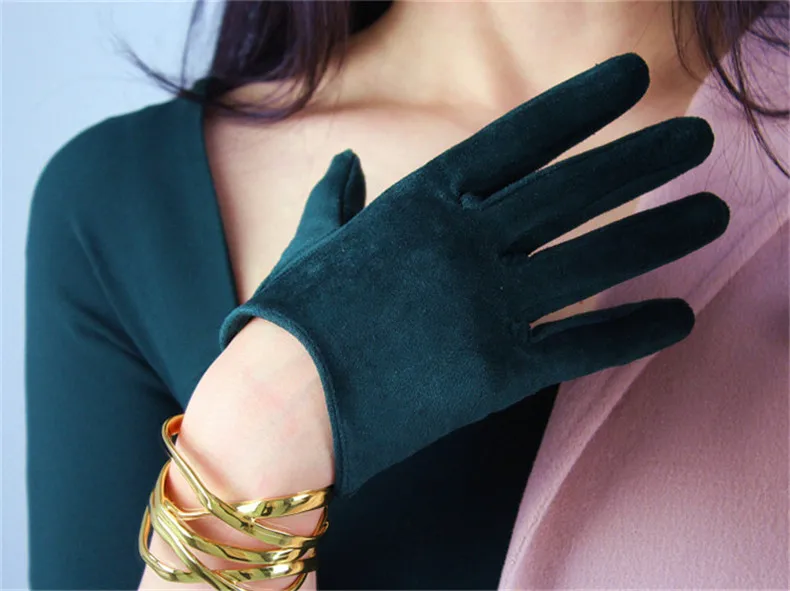 Женские замшевые перчатки, темно-зеленые перчатки из искусственной ...